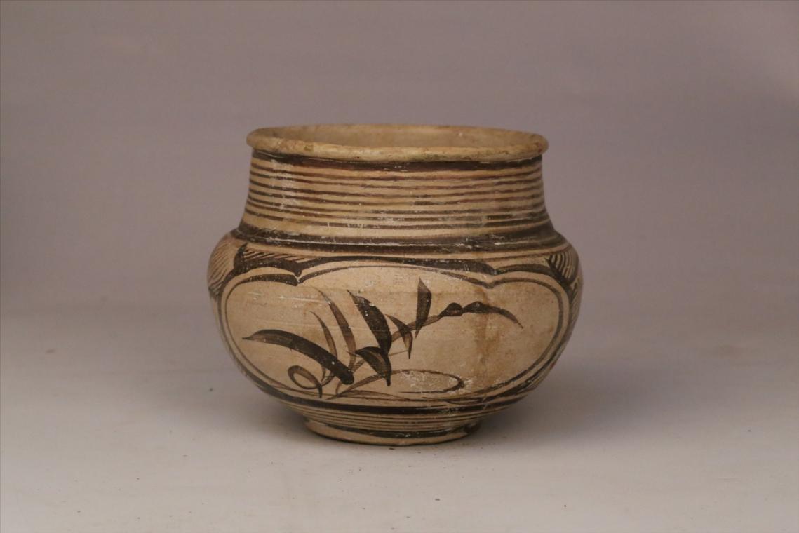 00547-A-0001宋吉州窑褐彩开光海水花卉纹罐