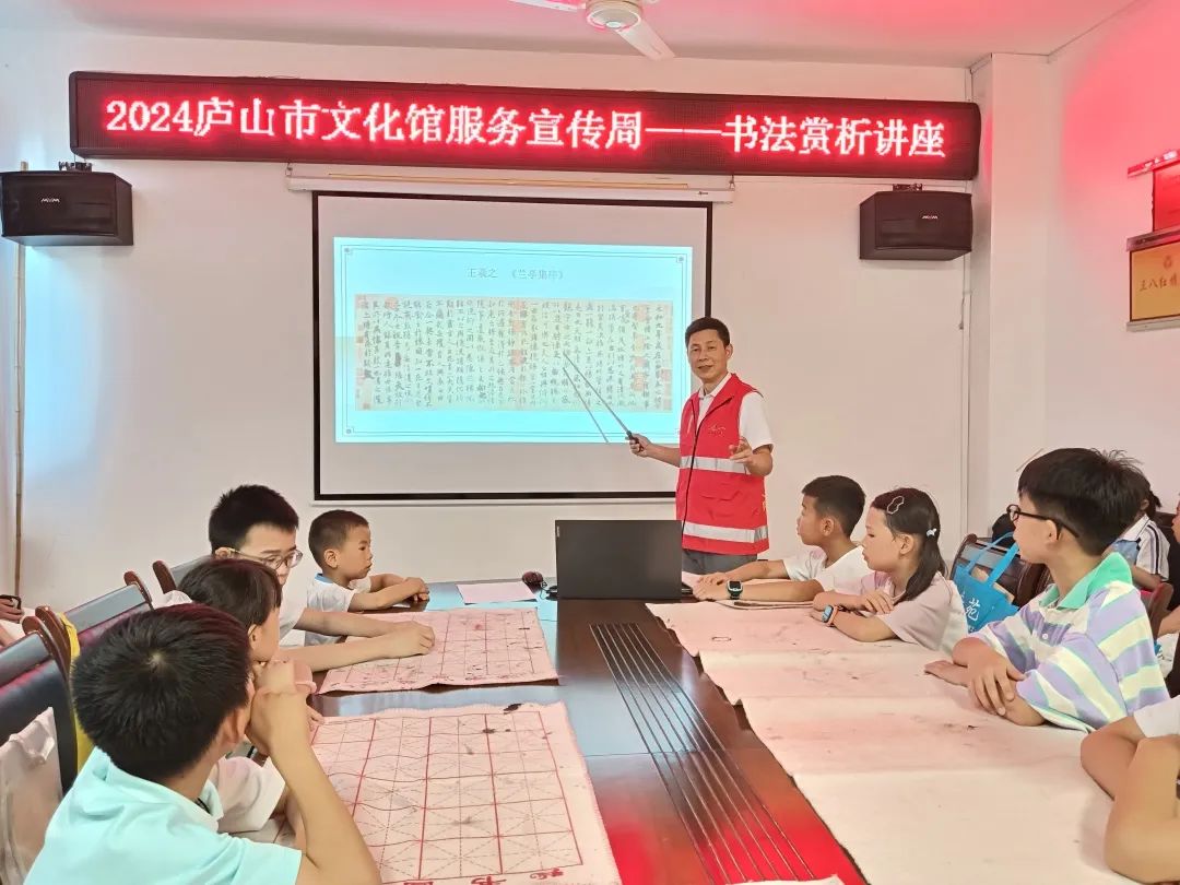 5月25日,2024庐山市文化馆服务宣传周系列活动——书法赏析讲座在文化馆三楼精彩开讲。中国硬笔书法协会会员、江西省书法家协会会员余小平老师为学生们讲解各类书法要点,带领大家体验书法的乐趣。