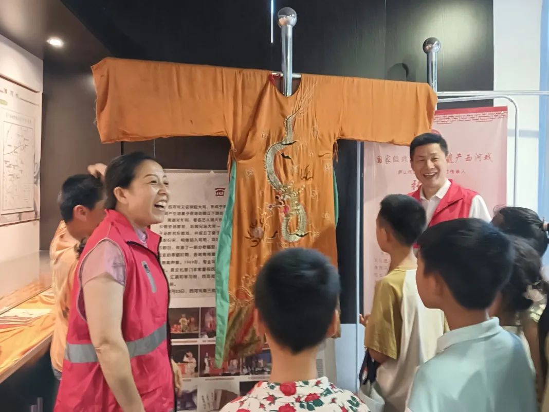传承人向大家介绍了西河戏的历史、经典戏腔和服饰特色,并带来了戏服供大家参观,让大家在亲身体验中体会非遗魅力。
