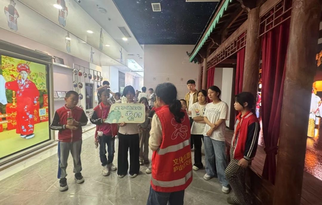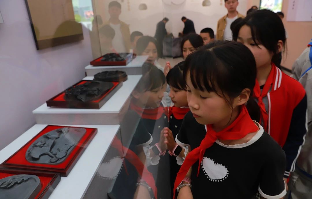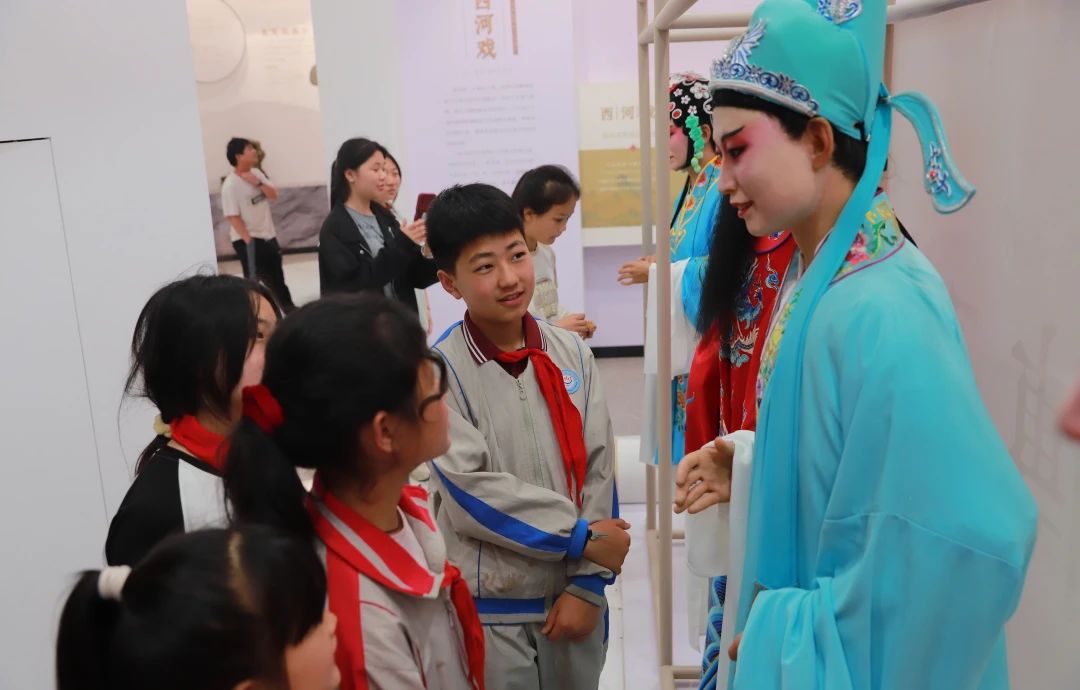 踏入非遗展示馆,孩子们瞬间被丰富多样的本地非遗项目所吸引。从雕刻精美的金星砚台到五彩缤纷的西河戏服饰介绍,每一处展示都让孩子们充满好奇与惊叹。
