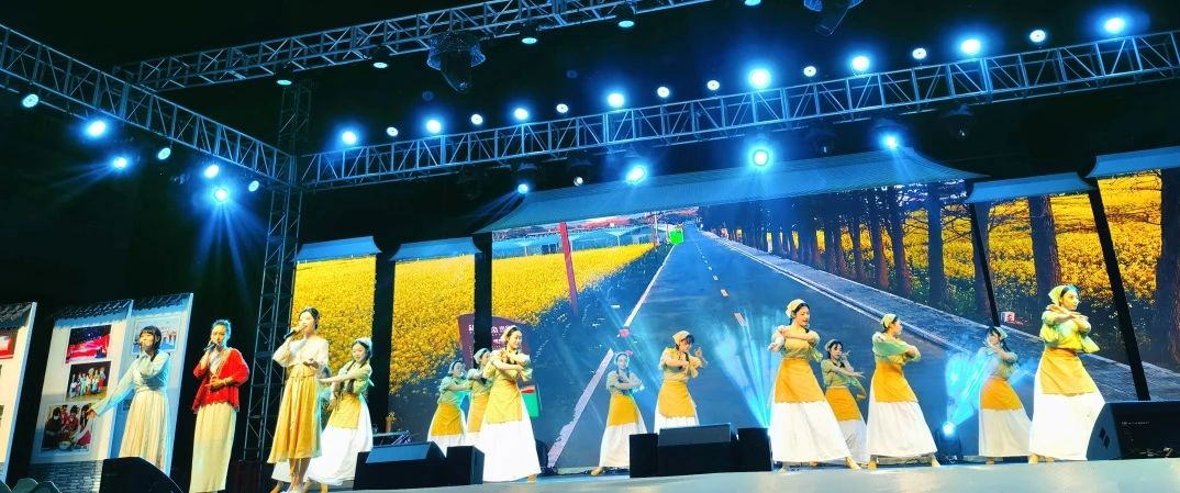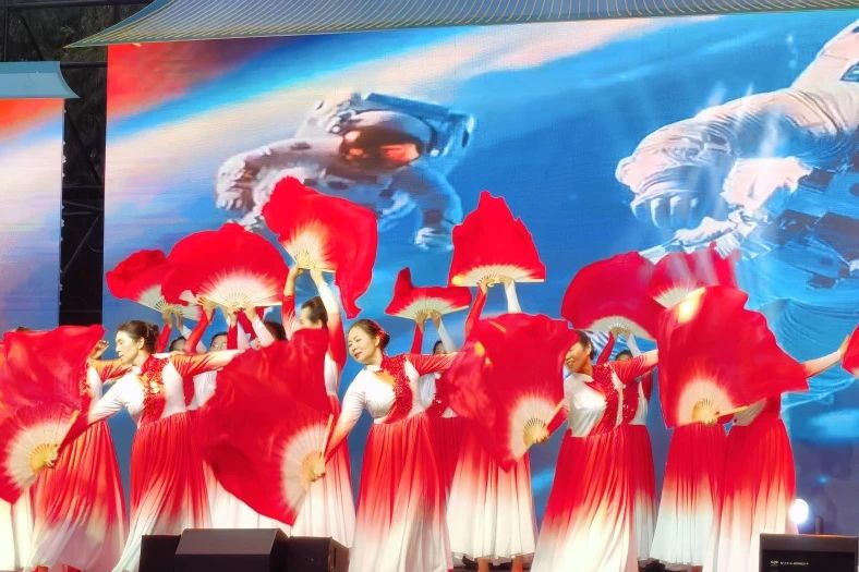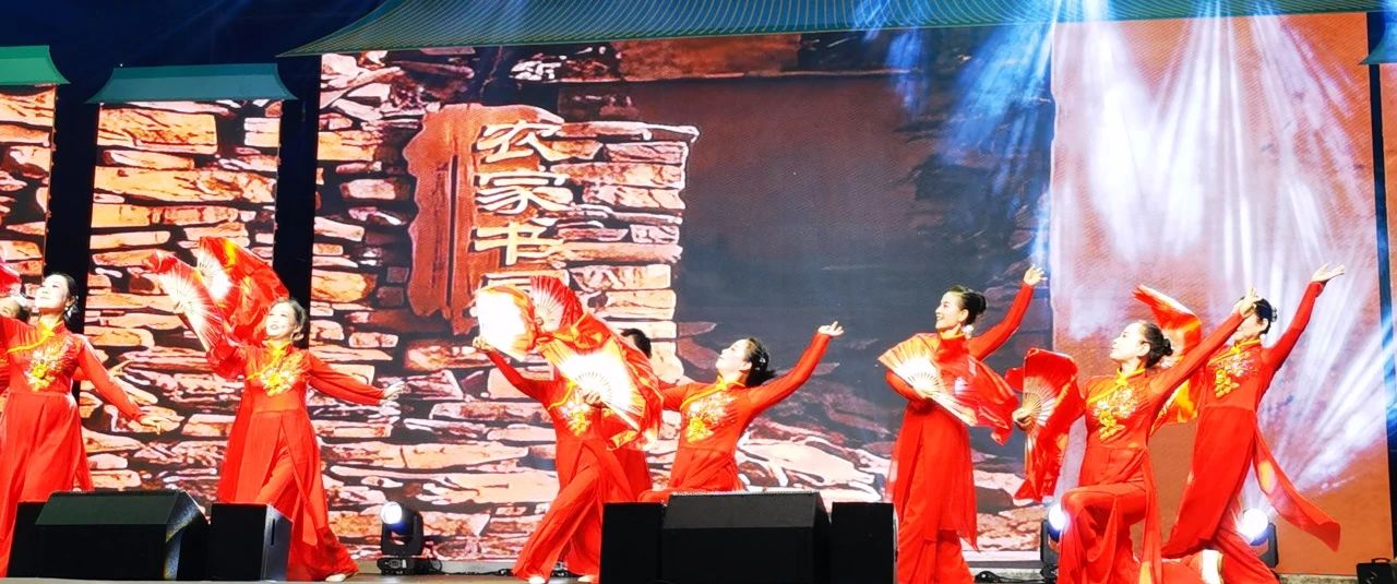 在开场舞《奋进新时代》激昂的旋律中,演员们以翻飞的红绸勾勒出奋进图景,拉开整场演出的序幕。原创歌伴舞《春居通书院》以诗画意境再现通书院村美好生活场景,民间小调《星子八大碗》则用方言土韵唱响记忆美食。