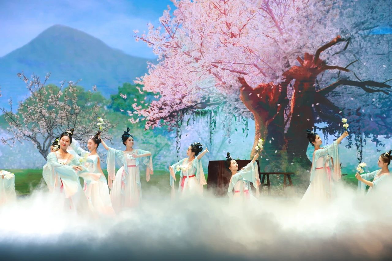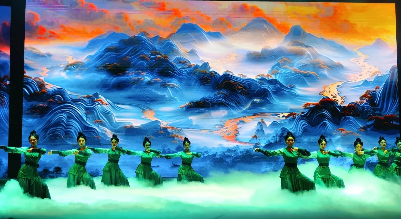 《仁心和合》篇章以庐山市传统医药、民俗礼仪等非遗项目为载体,以杏林春暖的传说为主线,将中医食疗、文尧公熏洗方等技艺与舞蹈相融合。演员们身着汉服,以优雅舞姿模拟中医穴位推拿手法,配合水墨风格的背景,诠释“天人合一”的东方智慧。