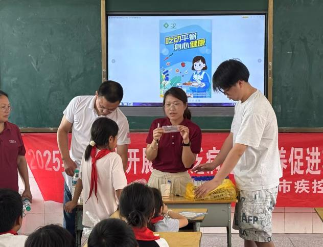 为深入贯彻落实《健康中国行动(2019—2030年)》中关于合理膳食行动的相关要求,提升全民营养意识与健康素养,在2025年全民营养周及第36个“5·20”中国学生营养日到来之际,庐山市疾病预防控制中心于2025年5月14日至5月20日,组织开展了以“吃动平衡 健康体重 全民行动 ”和“吃动平衡 身心健康”为主题的系列宣传活动,面向广大市民和学生普及营养健康知识。