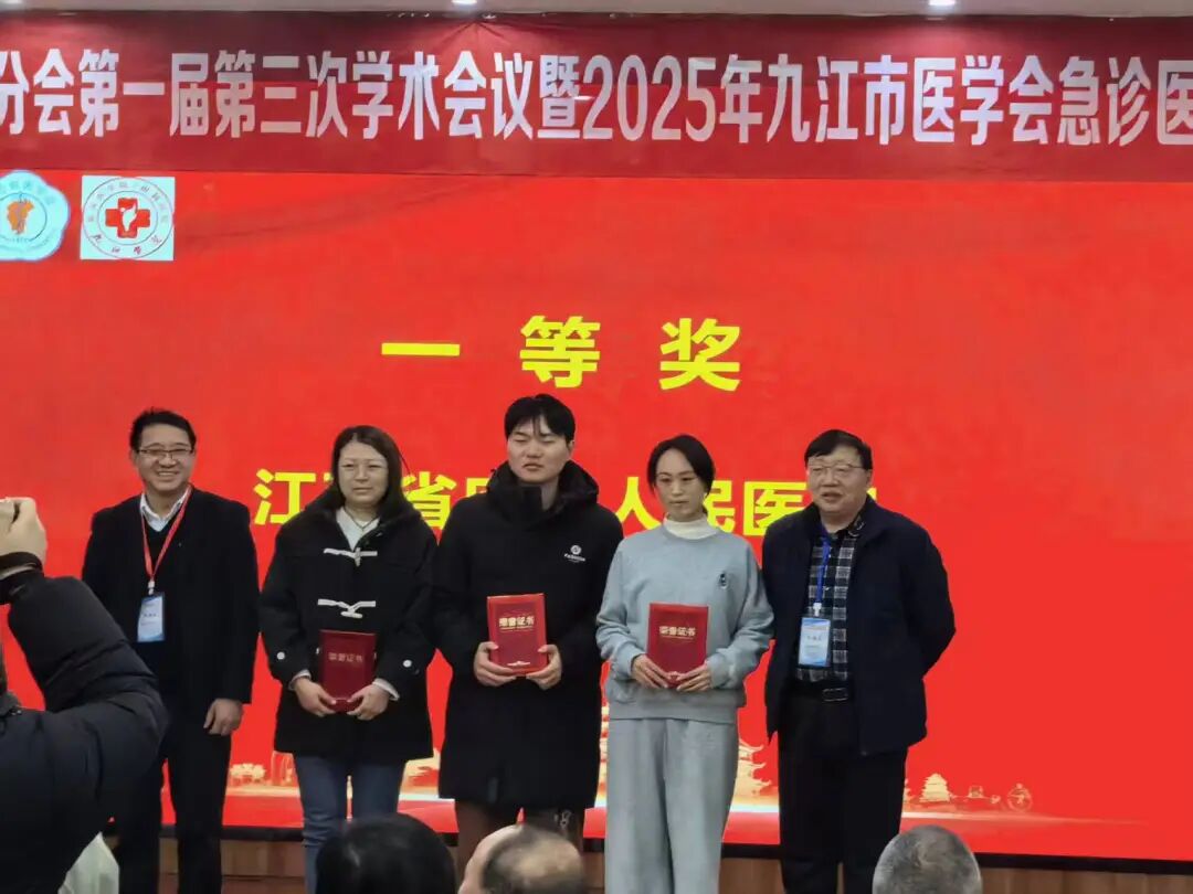 【急诊科 文/摄】为全面提升九江市急危重症救治实践技能,充分展现医务人员专业能力,推动急危重症医学事业持续发展,12月27日,由九江市医学会急诊医学分会主办的“九江市医学会急诊医学分会第一届第三次学术会议”顺利召开。会议特别设置了急危重症一体化救治实景大比武环节,吸引了来自全市及各县区各级医疗机构的急危重症专业骨干参与。由我院急诊科景康伟、孙梦菲、汤丽萍组成的参赛队伍表现出色,荣获团体一等奖。