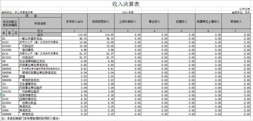 本年收入的具体构成为:财政拨款收入114.65万元,占100%;事业收入 0万元,占0%;经营收入0万元,占0%;其他收入0万元,占0%。