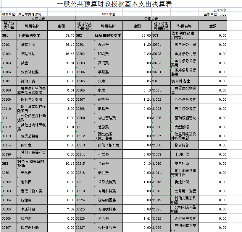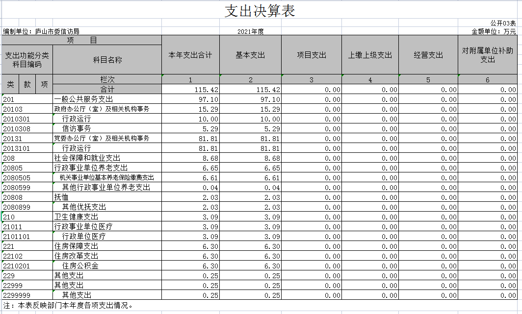 本部门2021年度财政拨款本年支出年初预算数为112.08万元,决算数为115.42万元,完成年初预算的102.98%。其中:
