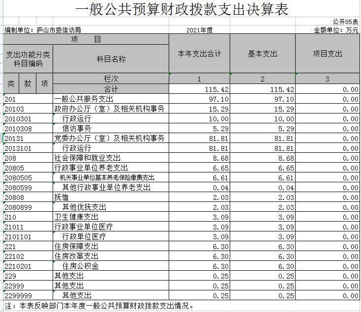 本部门2021年度一般公共预算财政拨款基本支出115.42万元,其中: