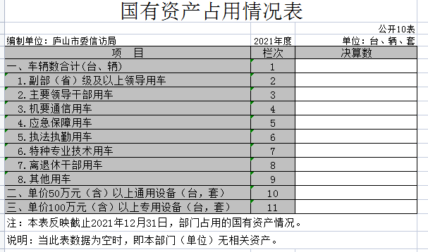 截止2021年12月31日,本部门国有资产占用情况见公开09表《国有资产占用情况表》。本部门共有车辆0辆,其中,副部(省)级及以上领导用车0辆、主要领导干部用车0辆、机要通信用车0辆、应急保障用车0辆、执法执勤用车0辆、特种专业技术用车0辆、其他用车0辆;单位价值50万元以上通用设备0台(套);单位价值100万元以上专用设备0台(套)。