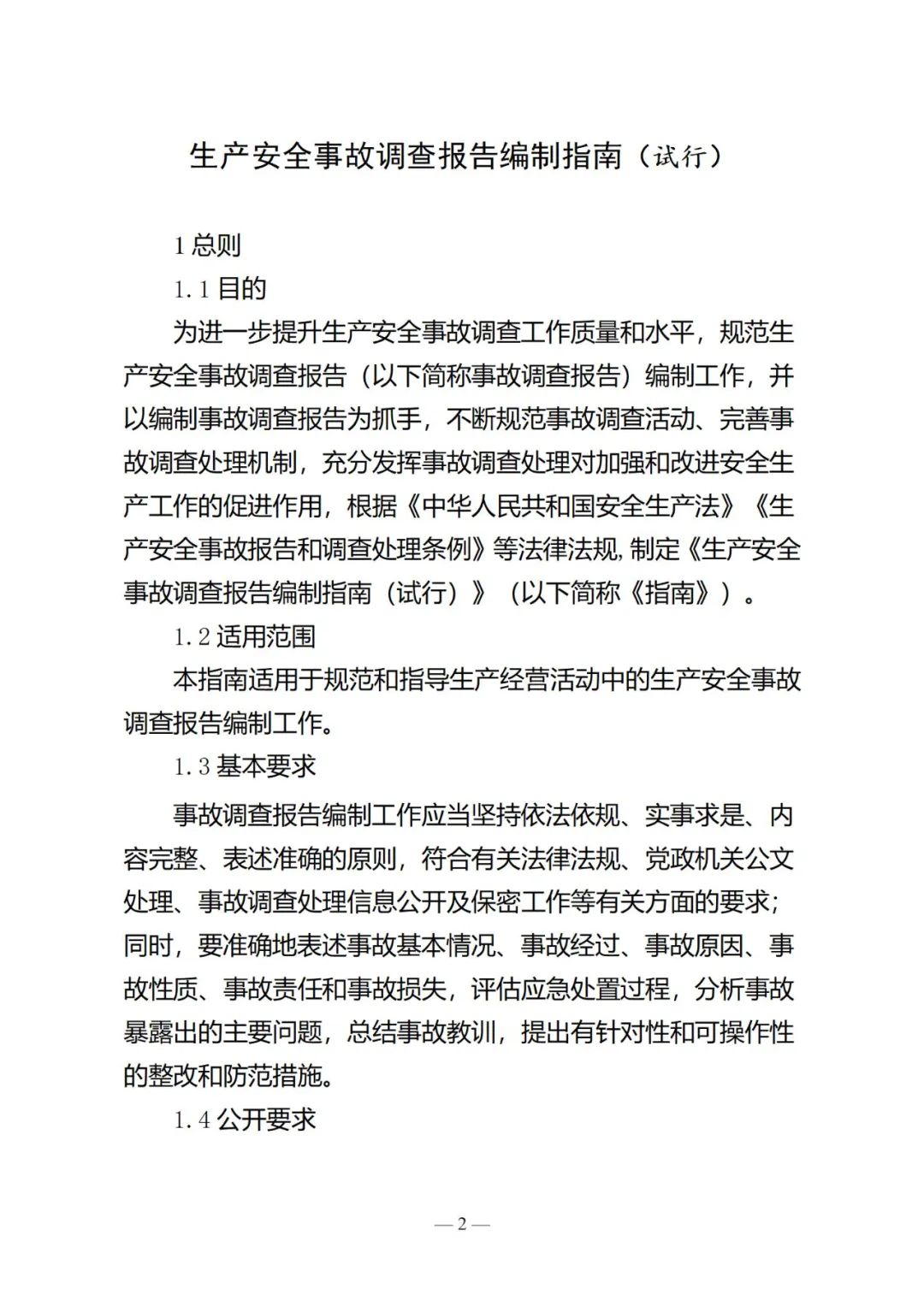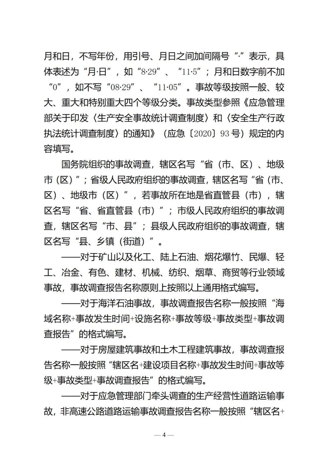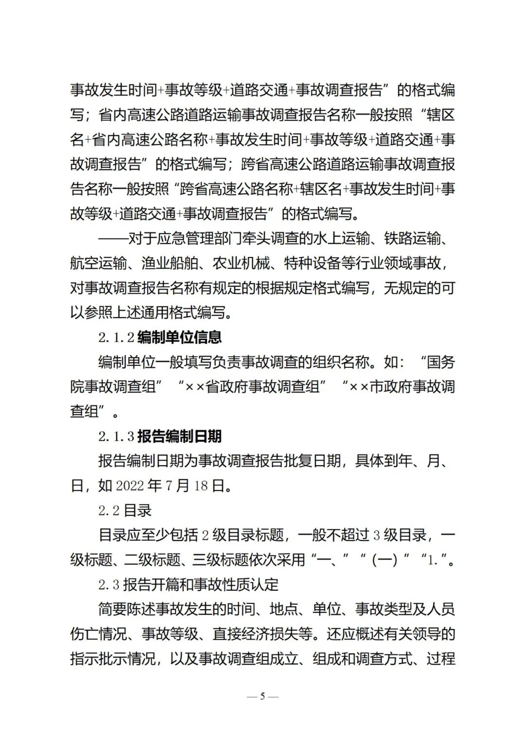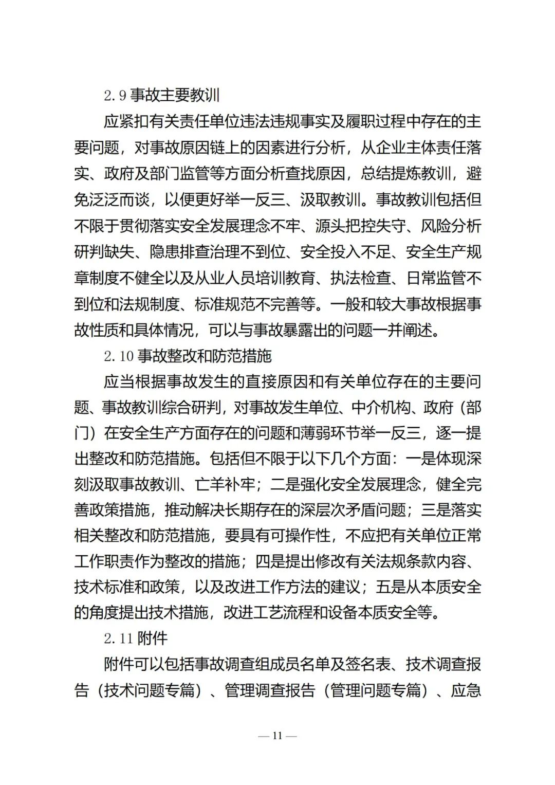 应急管理部办公厅关于印发《生产安全事故调查报告编制指南(试行)》的通知