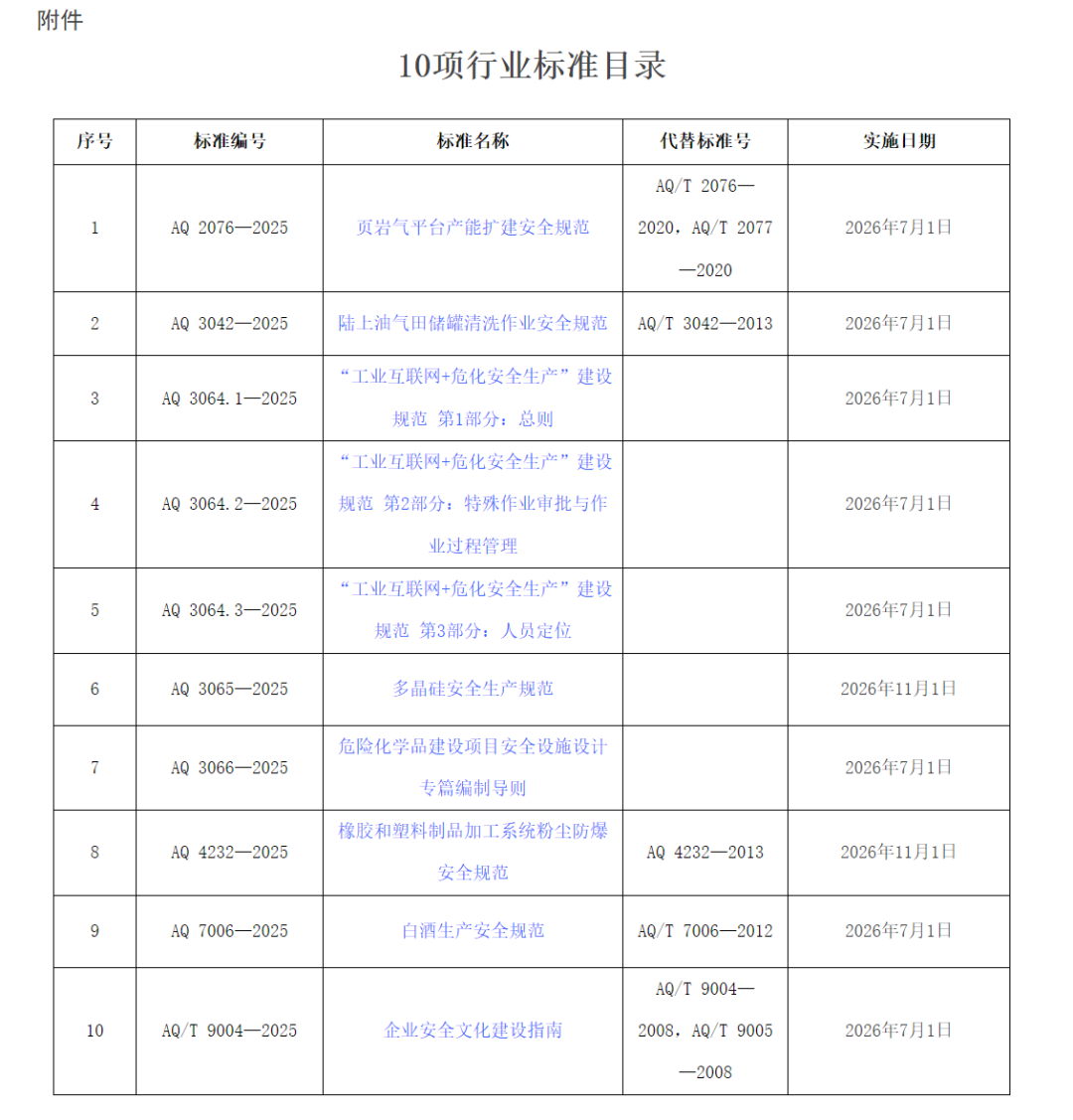 批准10项行业标准!应急管理部公告