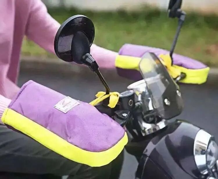 相比于车把式手套,佩戴骑行专用的分指保暖手套更加安全,挡风之余也不影响操作车辆。