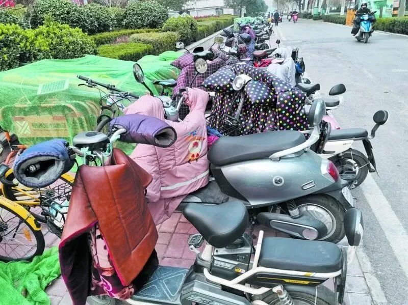 随着天气逐渐寒冷,不少人开始给自家电动自行车加装车把套、挡风被等“御寒神器”。