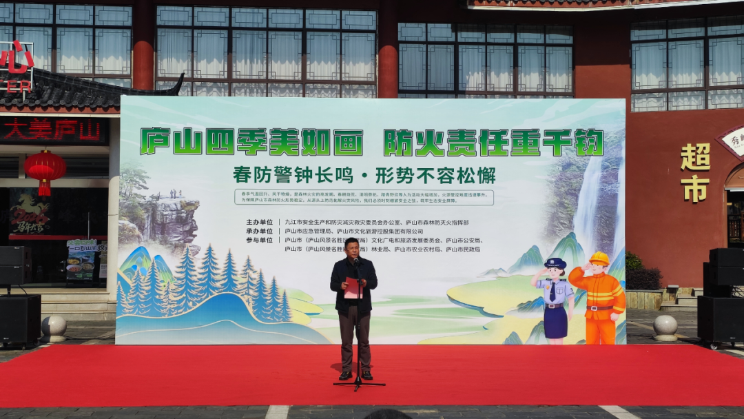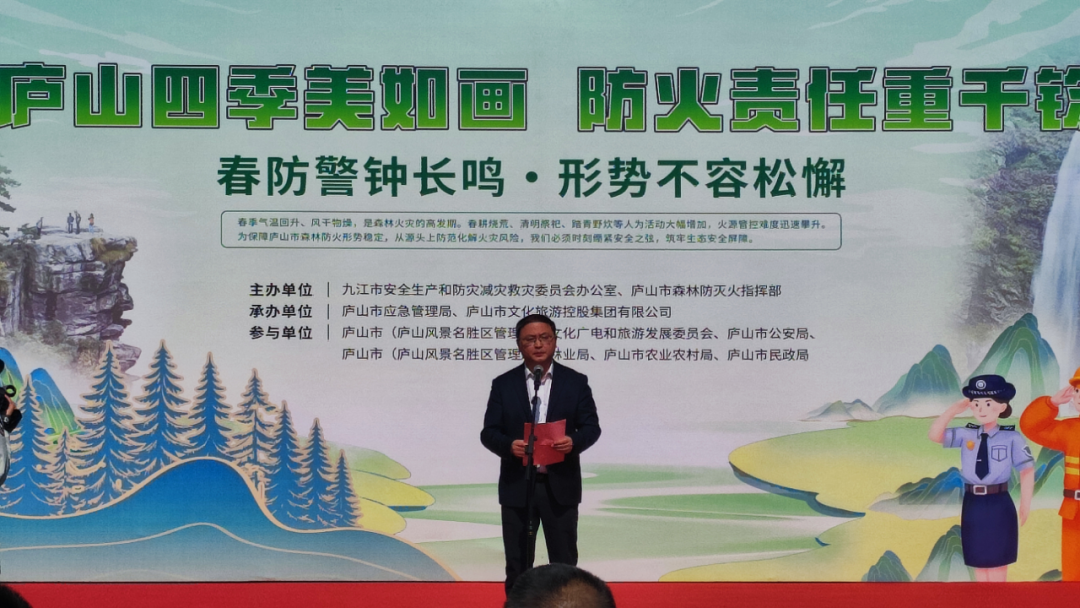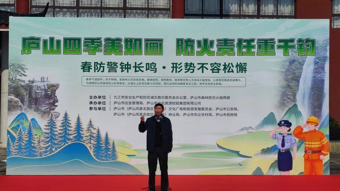 省应急管理厅火灾防治管理处二级调研员曹传平,九江市应急管理局党委委员胡细根,九江市林业局党委委员、副局长邹细阳,庐山市委常委、常务副市长邓剑,庐山市副市长温战强出席活动。市县两级公安、文广旅、民政、农业农村等相关成员单位负责同志及市县专业森林消防队伍参加活动。