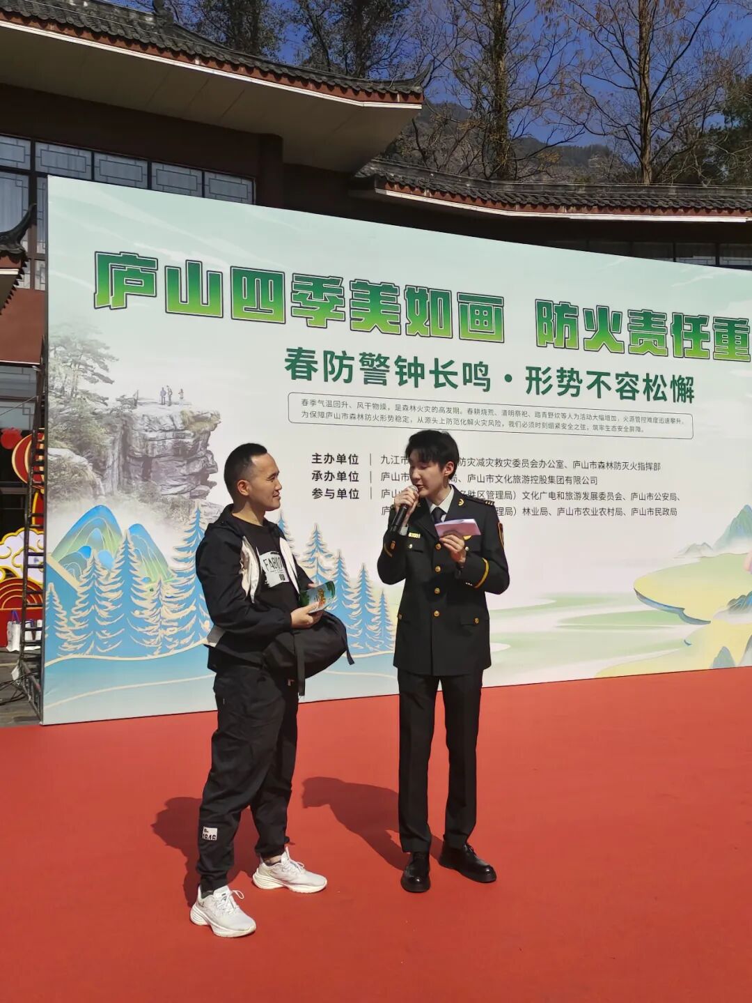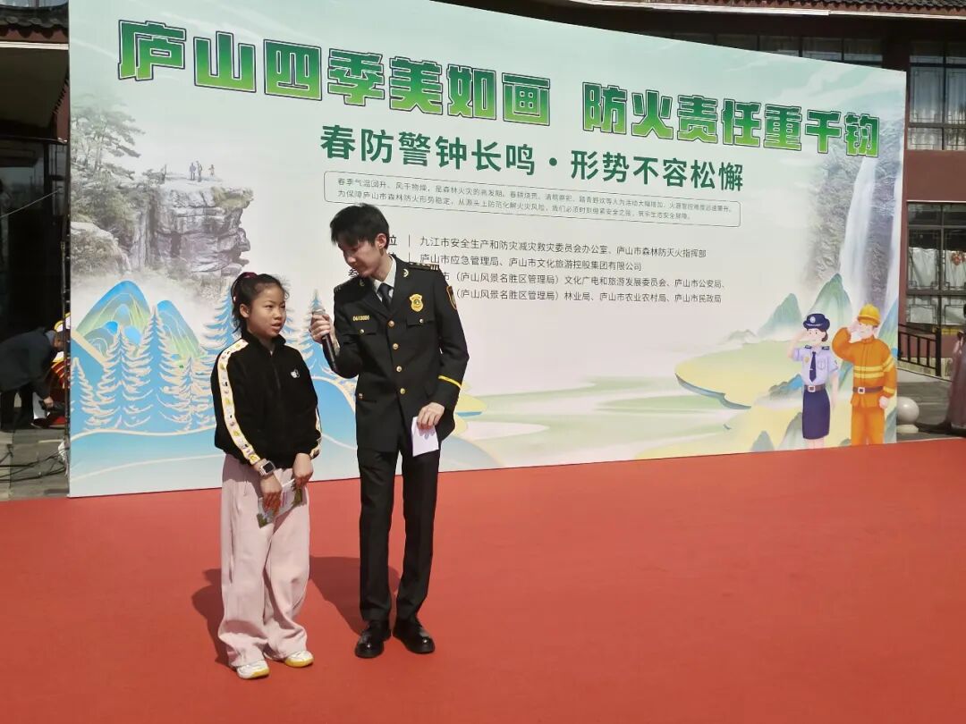 3月14日上午,九江市安全生产和防灾减灾救灾委员会办公室联合庐山市森林防灭火指挥部,在庐山市秀峰景区举行森林防灭火“平安春季行动”宣传活动。本次活动以“庐山四季美如画 防火责任重千钧”为主题,紧扣春季防火关键期,通过群众喜闻乐见的形式,将森林防灭火知识送入景区、送入人心,营造全民参与、群防群控的良好氛围。