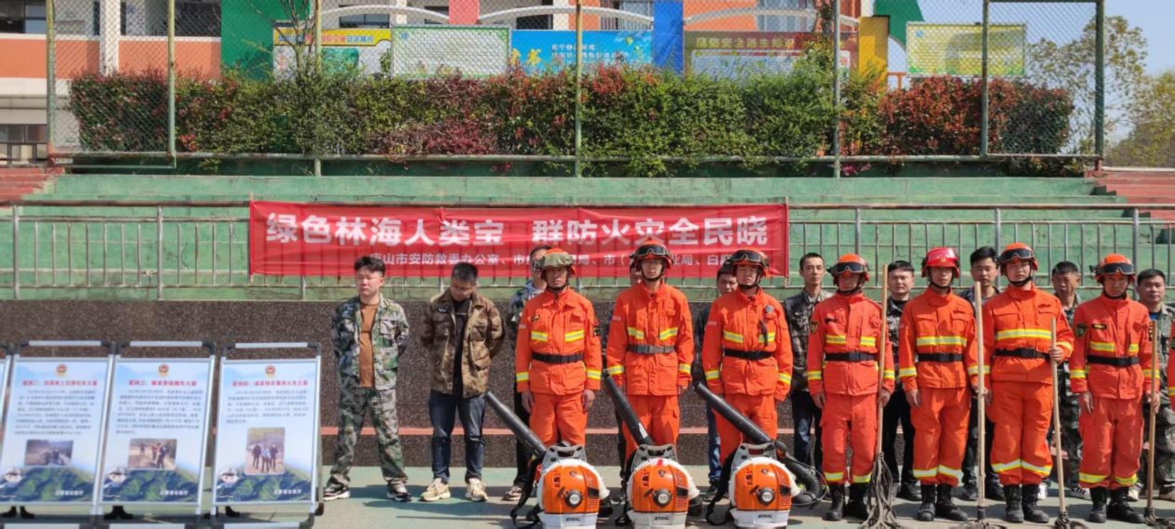 近期,为深入开展森林防灭火“平安春季行动”,庐山市安全生产和防灾减灾救灾委员会办公室组织市应急管理局、市(局)林业局、市公安局及相关单位开展以“绿色林海人类宝,群防火灾全民晓”为主题的宣传活动,通过多场景宣传与实战演练相结合,织密森林安全防护网。