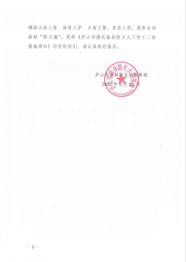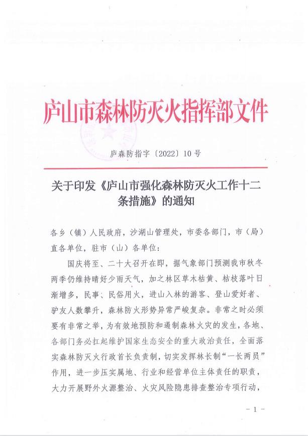 关于印发《庐山市强化森林防灭火工作十二条措施》的通知
