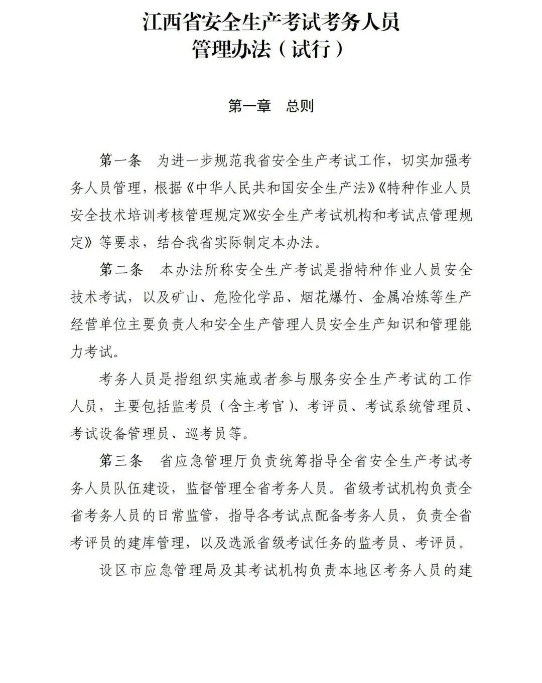 《江西省安全生产考试考务人员管理办法(试行)》印发