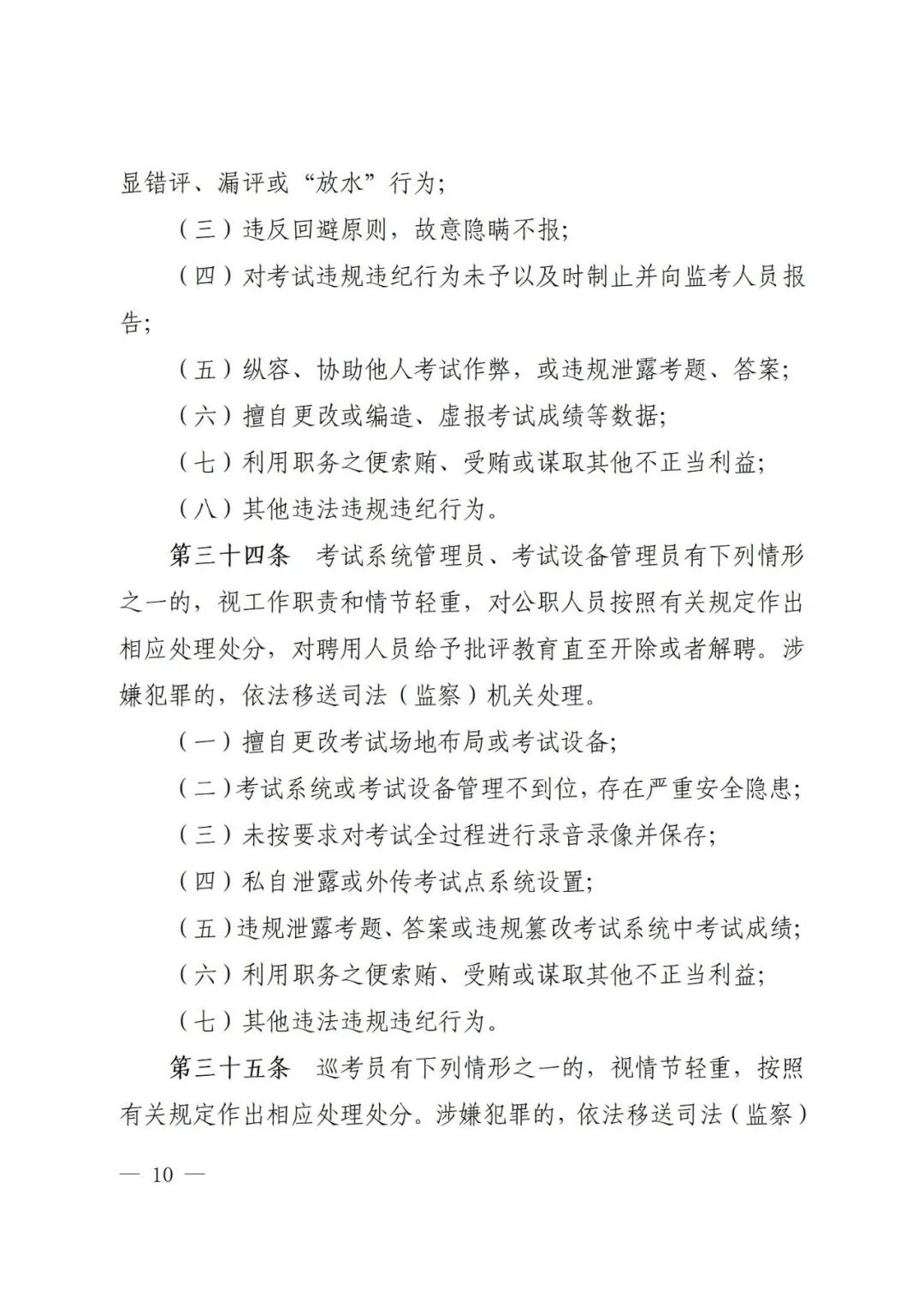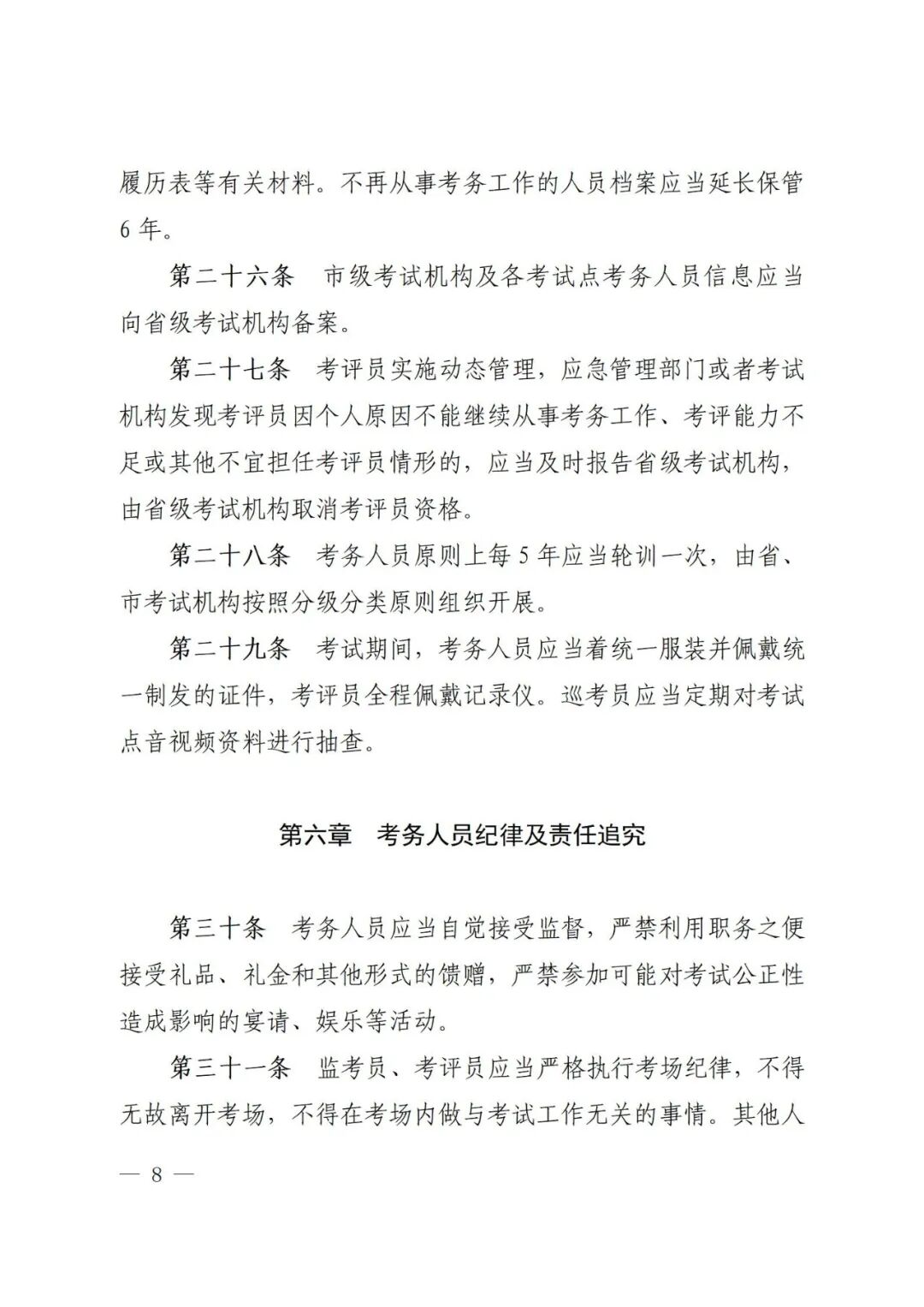 (四)明确考务人员纪律要求。结合安全生产培训考核工作实际,细化各类考务人员负面行为清单,将严的基调、严的措施贯穿考务人员选配管用全链条、各环节,对考务人员存在违规违纪违法行为的,视情节轻重给予相应处理处分。
