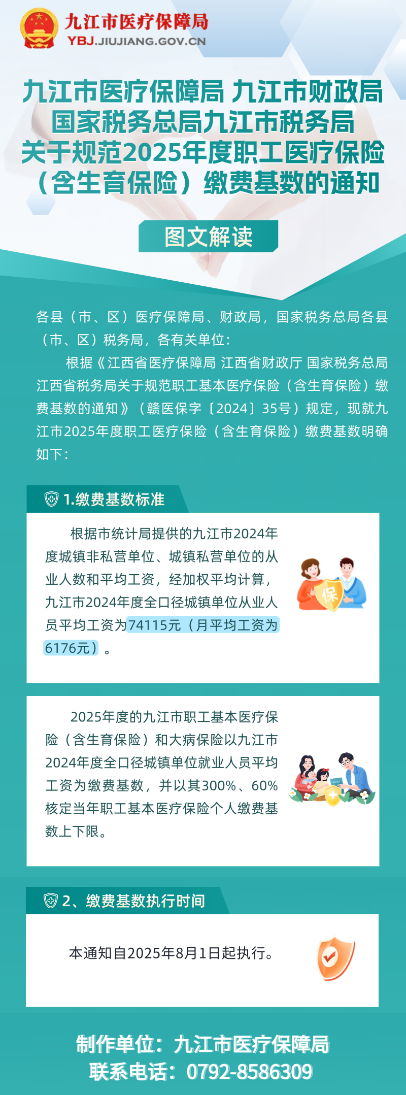 图文解读:《九江市医疗保障局 九江市财政局 国家税务总局九江市税务局关于规范2025年度职工医疗保险(含生育保险)缴费基数的通知》