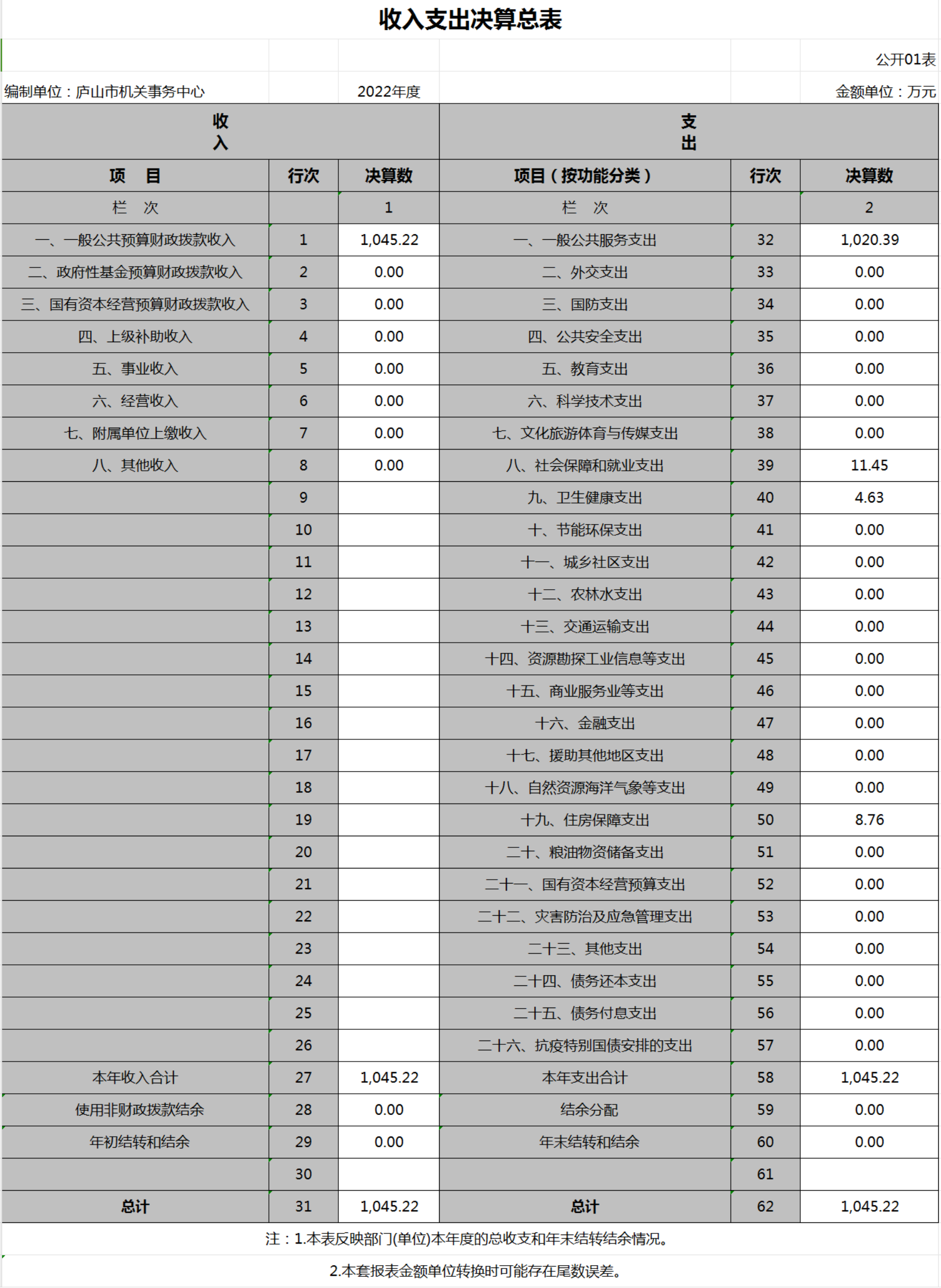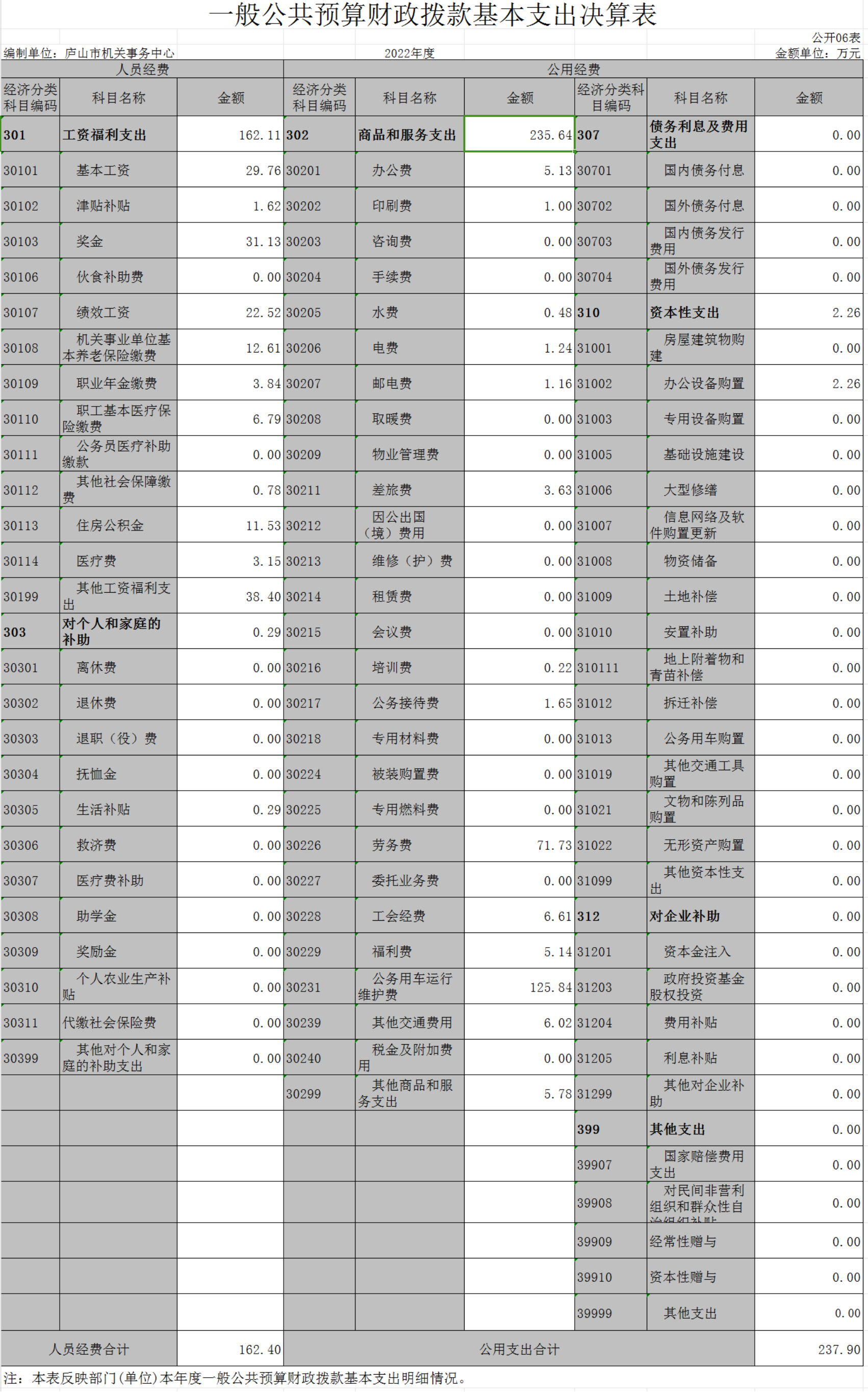 第二部分 2022年度单位决算表