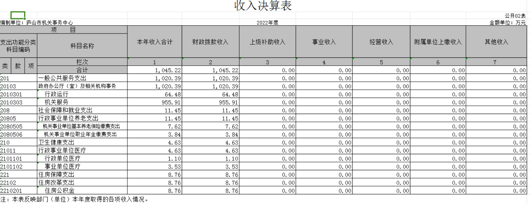本年收入的具体构成为:财政拨款收入1045.22万元,占100%;事业收入0万元,占0%;经营收入0万元,占0%;其他收入0万元,占0%。