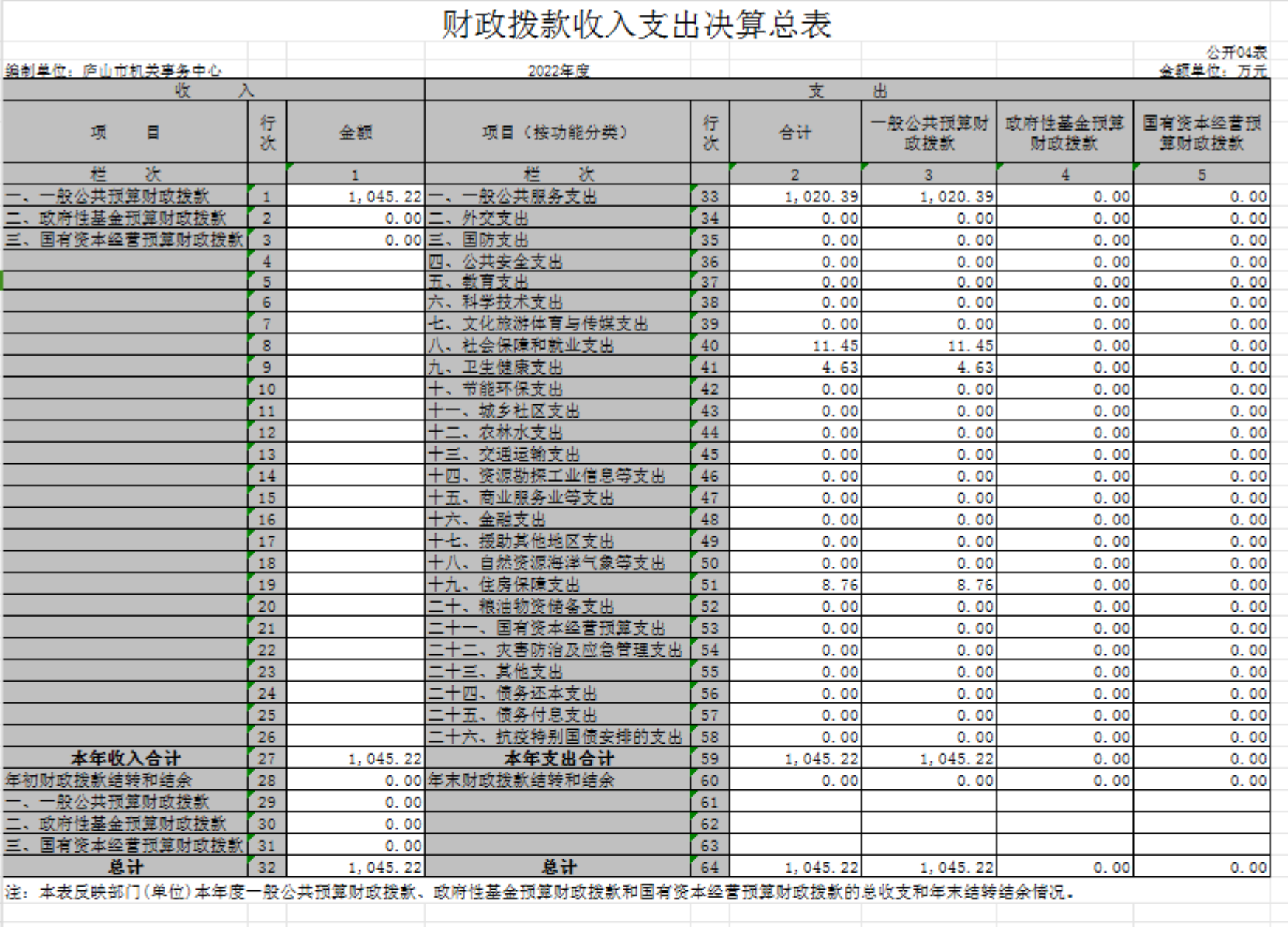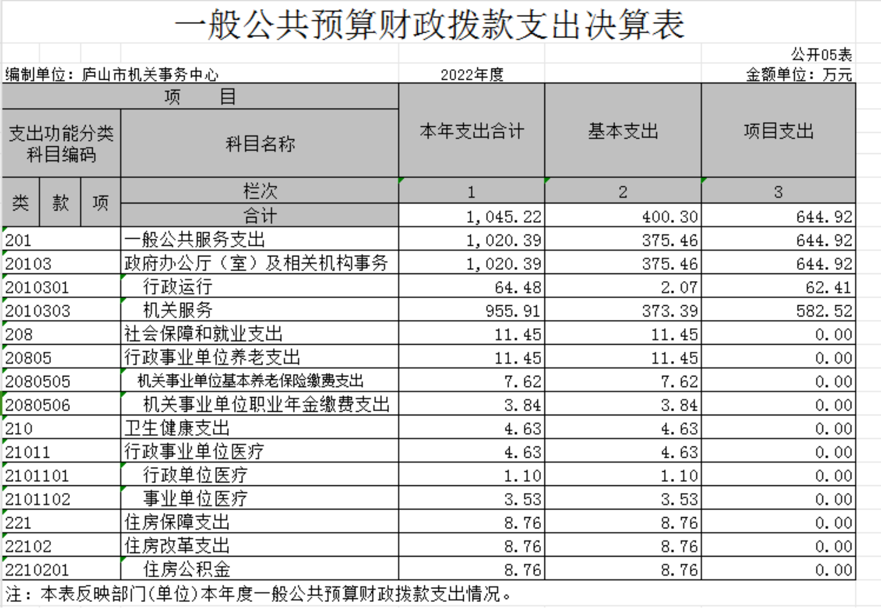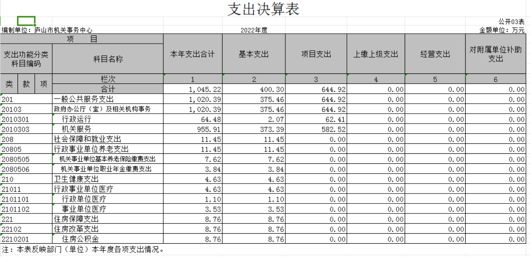 庐山市机关事务中心2022年度单位决算