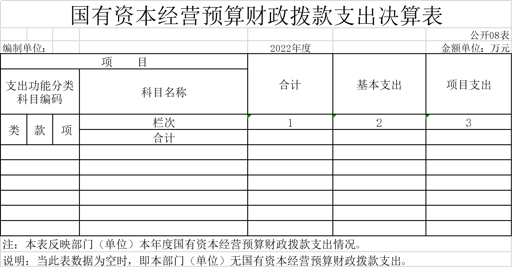 八、国有资本经营预算财政拨款支出决算表