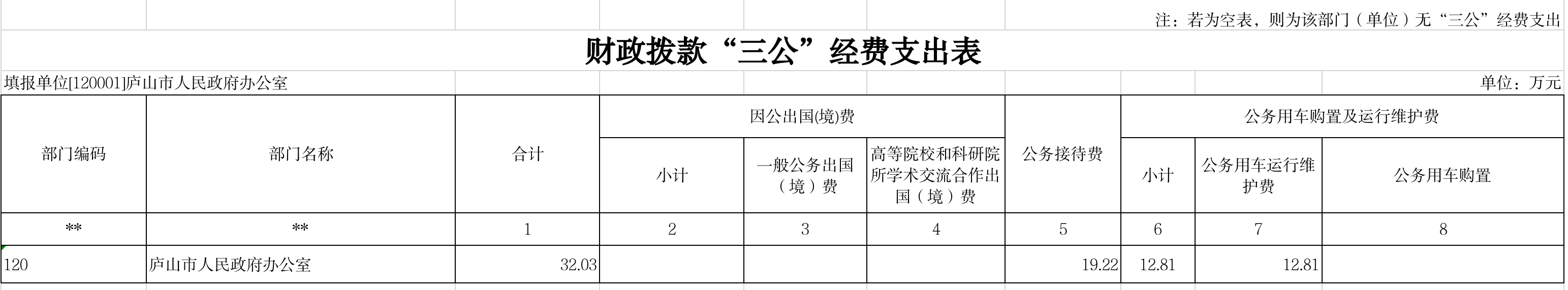 2024年庐山市人民政府办公室“三公”经费支出表