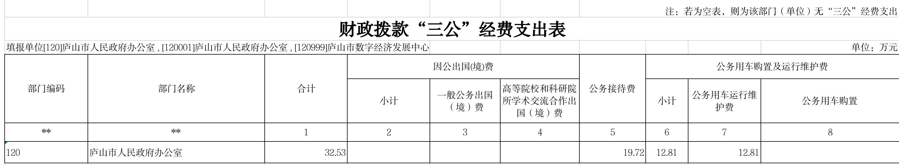 2024年庐山市人民政府办公室“三公”经费支出表(部门)