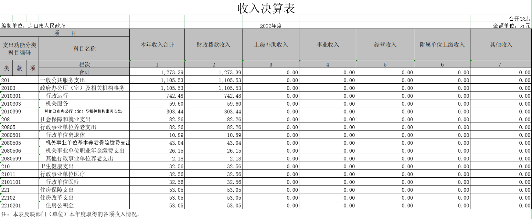 本年收入的具体构成为:财政拨款收入1273.39万元,占100%;事业收入0万元,占0%;经营收入0万元,占0%;其他收入0万元,占0%。