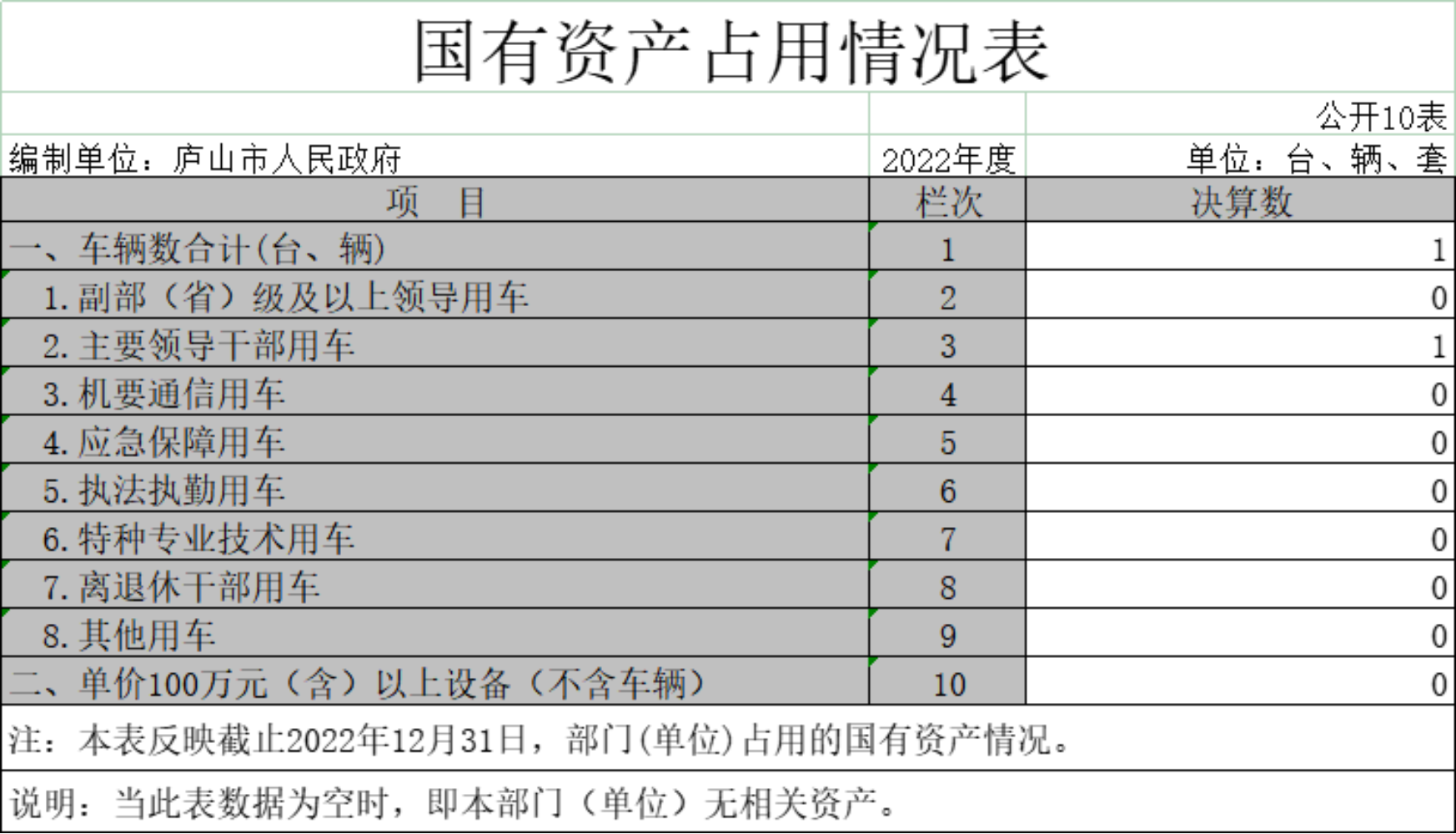 截止2022年12月31日,本单位国有资产占用情况见公开10表《国有资产占用情况表》。其中车辆中的其他用车主要是:无其他用车。