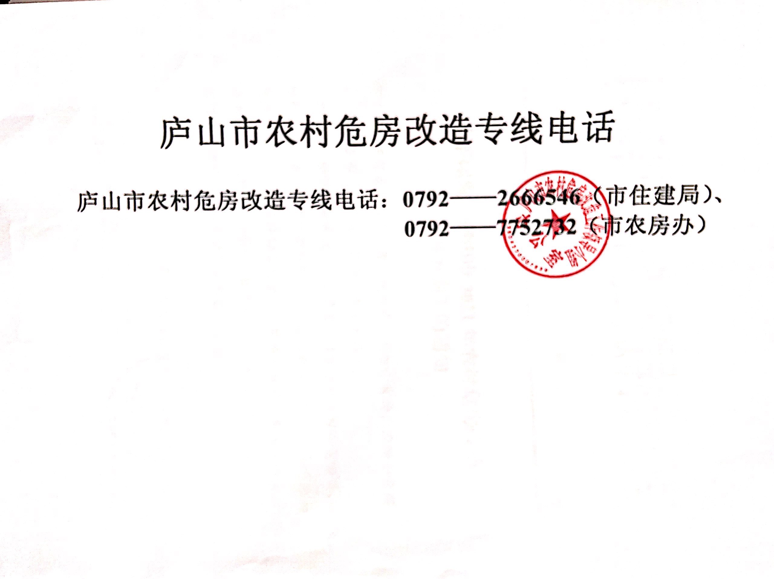 庐山市农村危房改造专线电话