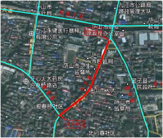庐山市匡庐路道路和立面改造提升工程道路位置示意图