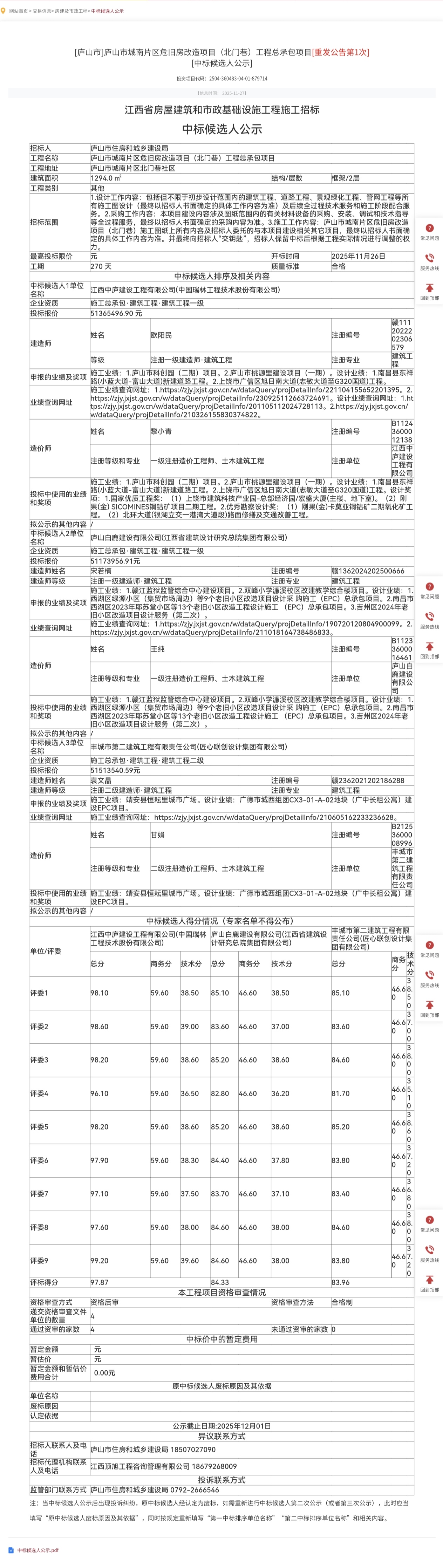 庐山市城南片区危旧房改造项目(北门巷)工程总承包项目