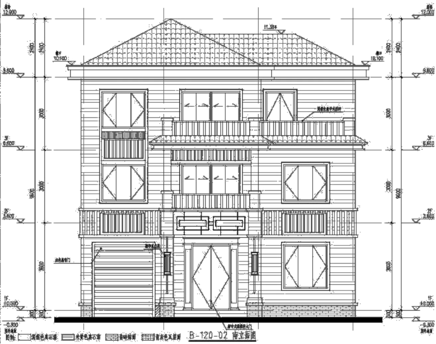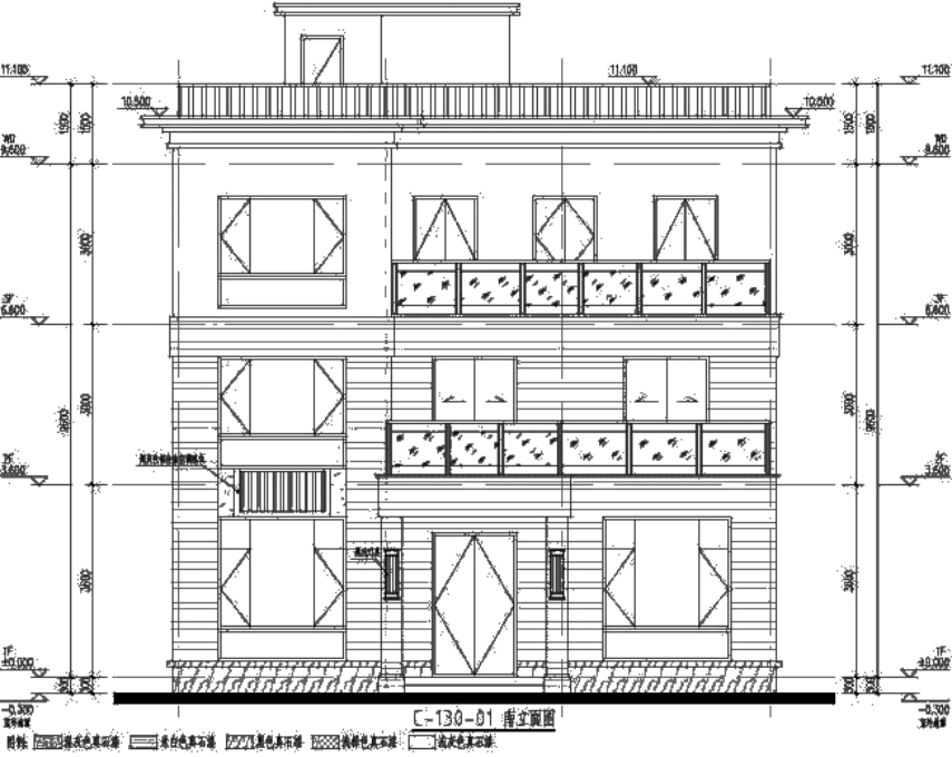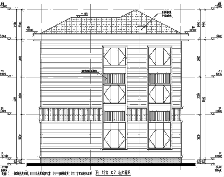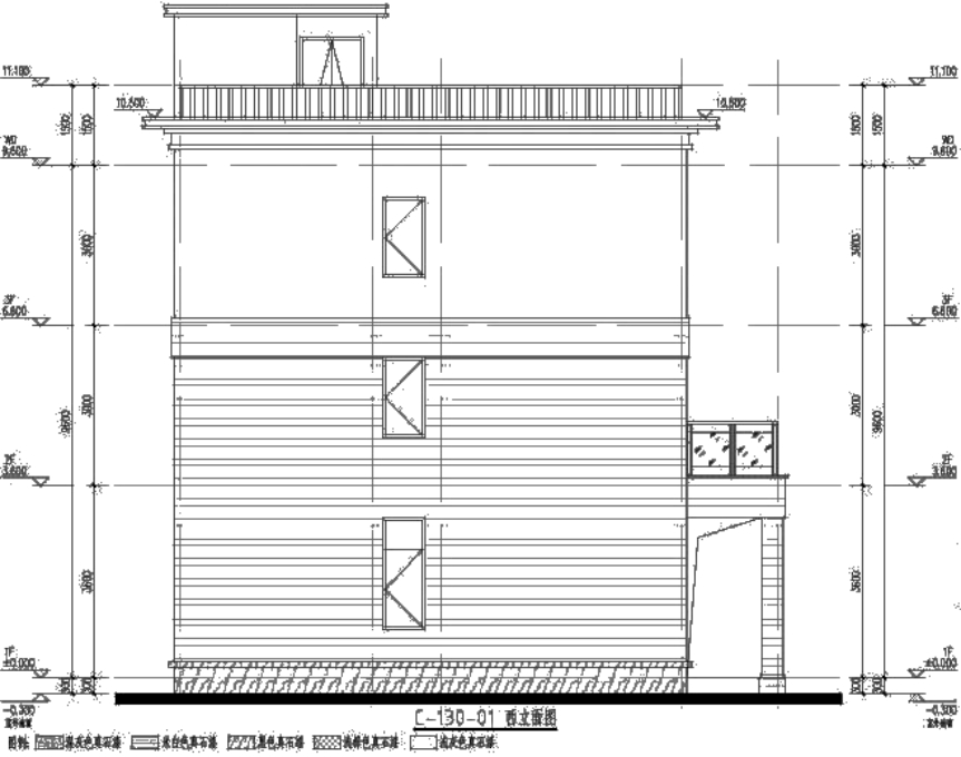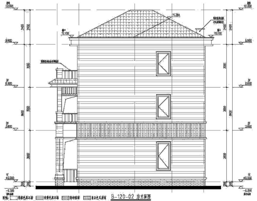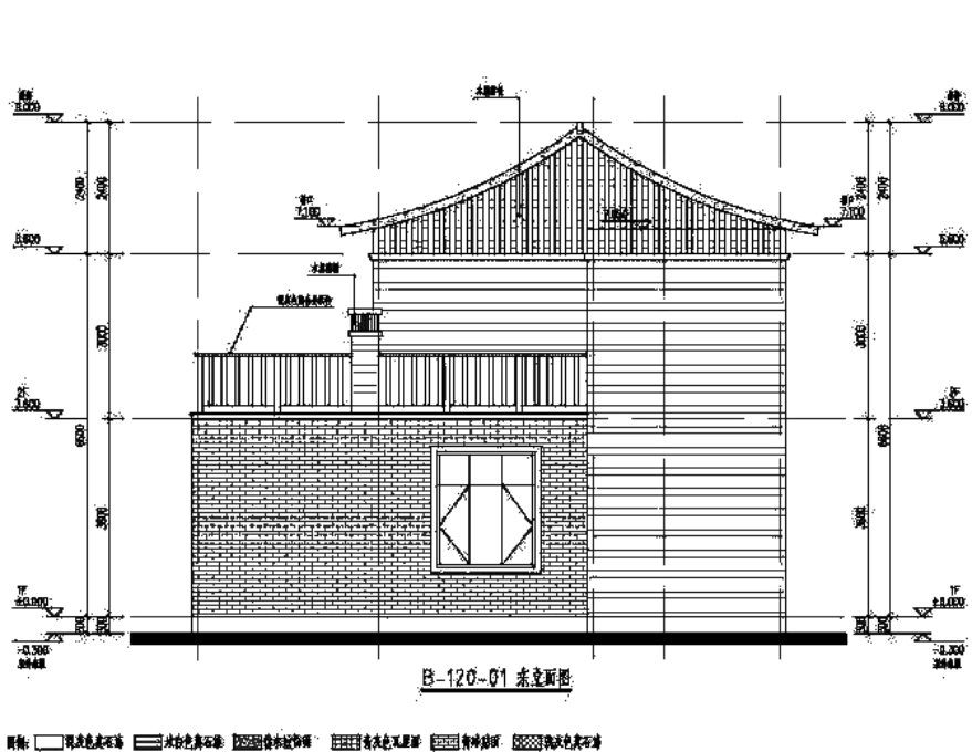 1.宅基地面积:117.52m²(120m²) 2.建筑面积:299.10m²(350m²) 3.建筑层数:3层 4.檐口高度:10.40m(11m) 5.屋脊高度:12.30m(13m) 6.建筑风格:新中式 |