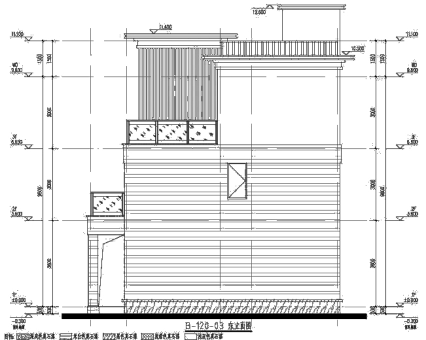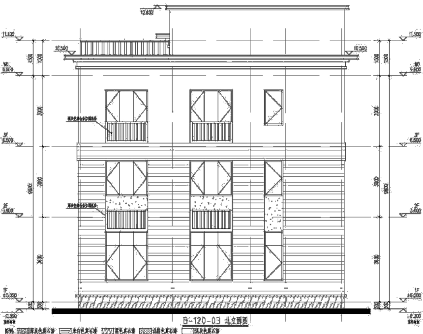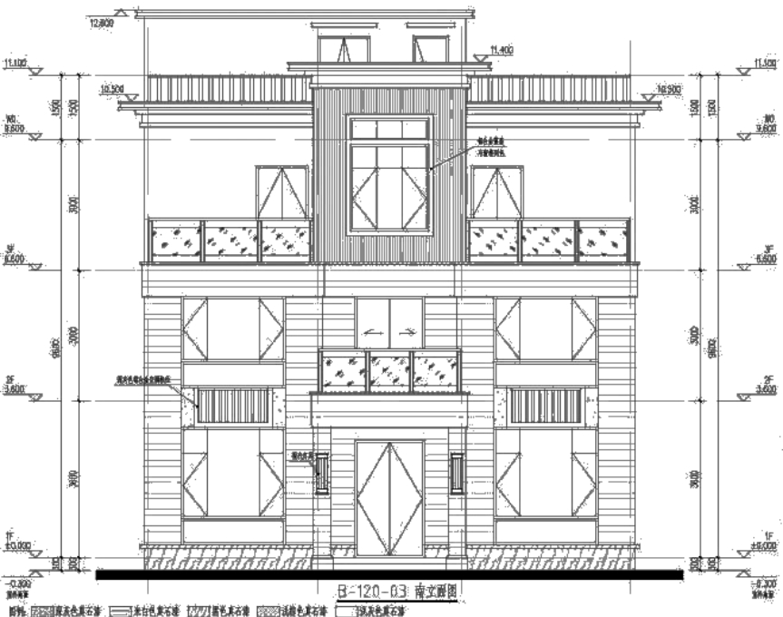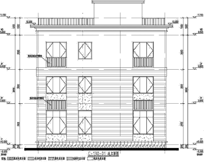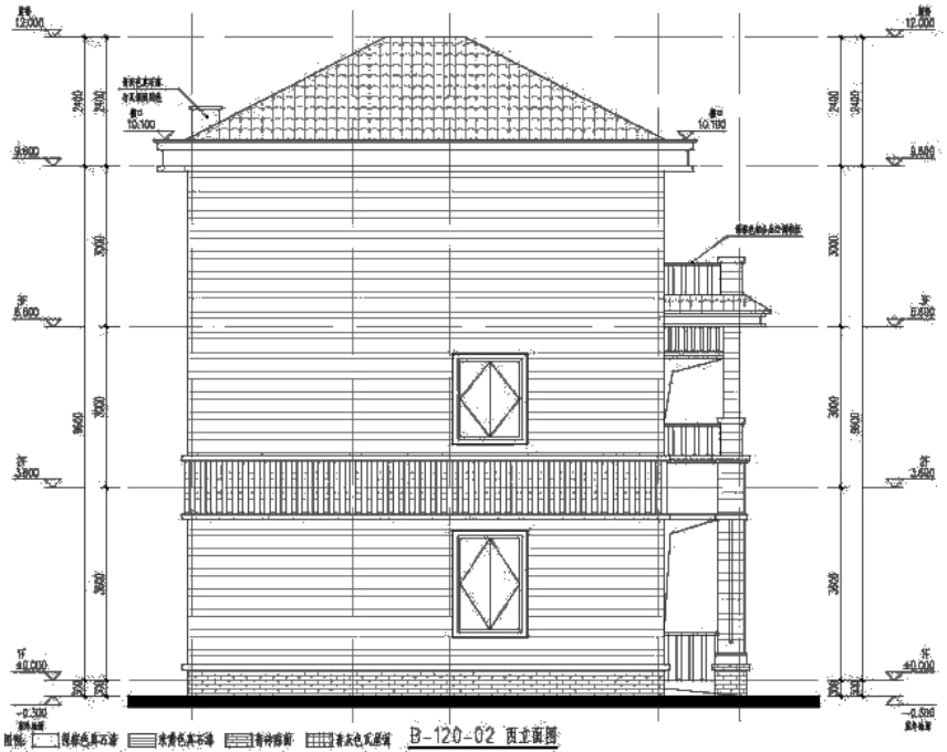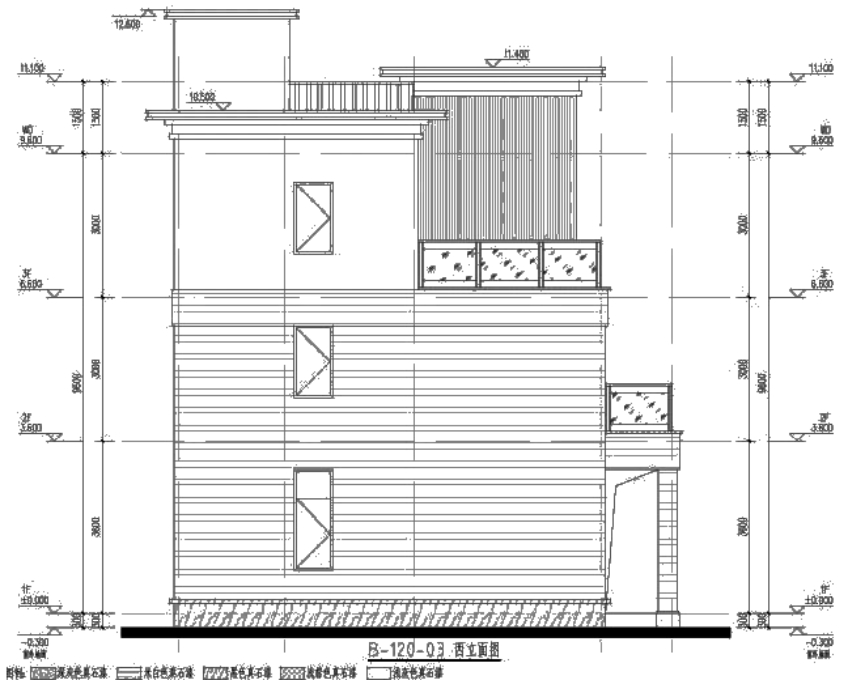 1.宅基地面积:117.52m²(120m²) 2.建筑面积:299.10m²(350m²) 3.建筑层数:3层 4.檐口高度:10.40m(11m) 5.屋脊高度:12.30m(13m) 6.建筑风格:新中式 |