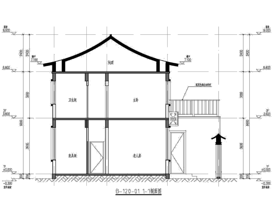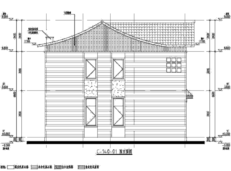 2.建筑面积:164.16m²(350m²) 3.建筑层数:2层 4.檐口高度:7.40m(11m) 5.屋脊高度:9.30m(13m) 6.建筑风格:地域民居 |