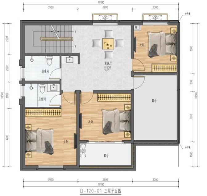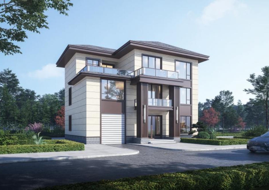1.宅基地面积:119.69m²(120m²) 2.建筑面积:332.90m²(350m²) 3.建筑层数:3层 4.建筑高度:11.40m(13m) 5.建筑风格:现代中式 |