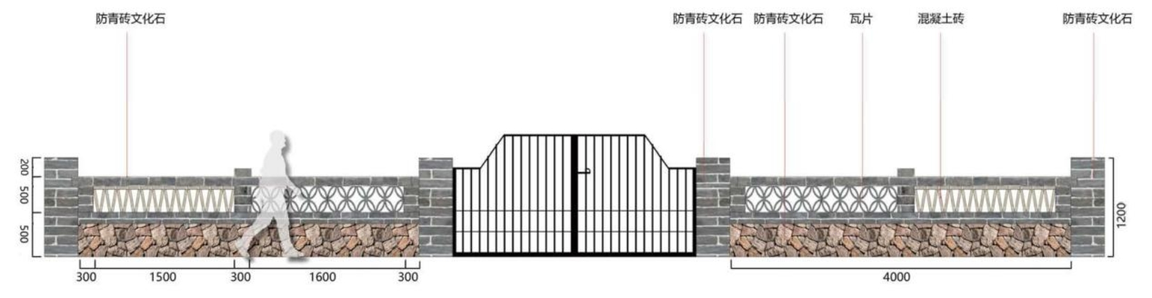 (三)围墙:严控区道路沿线一律按照要求进行退让,围墙倡导建造景观化的绿篱、矮墙,总高度不超过0.6米,不得建造功能性实体围墙。一般控制区围墙总高度不超过1.2米,非功能性实体围墙高度不超过0.6米。选用乡土材料,不得使用原色不锈钢、铝合金等与美丽乡村不符的建材。风格与主房及周边环境协调,不砌筑高墙、阻隔空间,宜通透开放、内外整洁,倡导矮墙、绿篱。庭院做到内外整洁有序,无乱堆乱放,无不雅构筑物。所有区域建筑外立面一律禁止使用条形瓷砖、马赛克等材料。