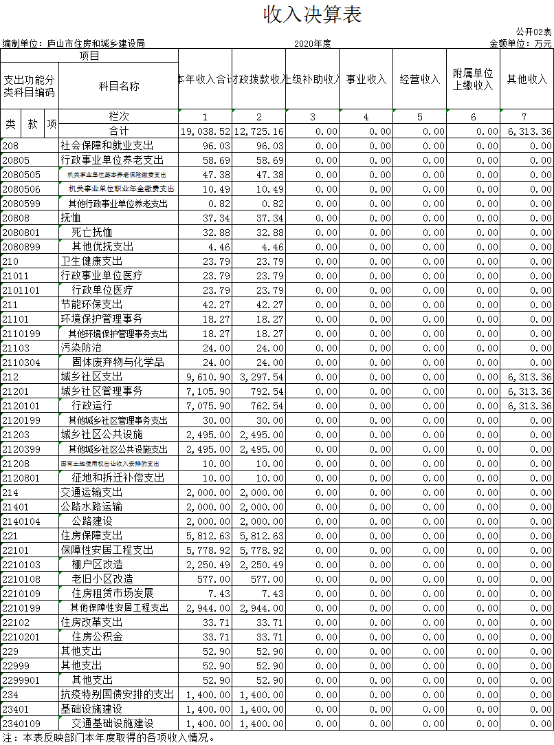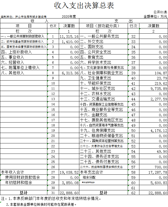 本部门2020年度收入总计22888.6万元,其中年初结转和结余3850.08万元,较2019年增加12650.19 万元,增长123.55 %;本年收入合计19038.52万元,较2019年增加9525.29 万元,增长100.12 %,主要原因是:2020年新增债券资金、抗疫特别国债资金和保障性住房专项资金,项目支出较多 。