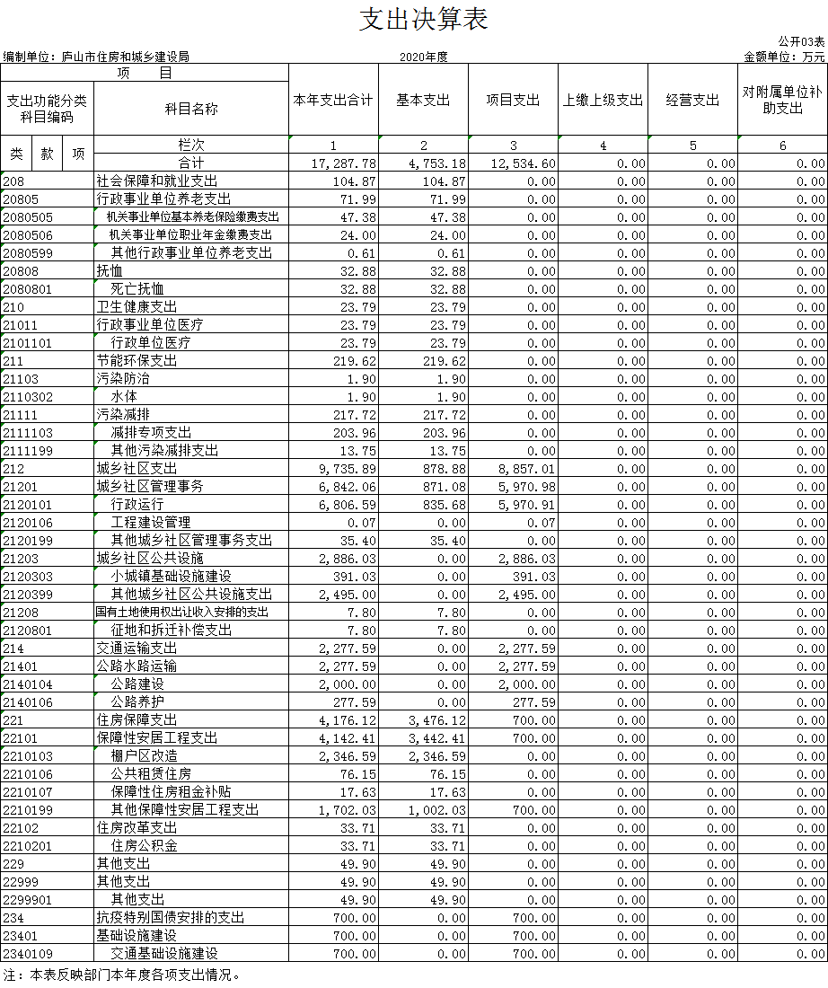 2020年我局整体支出17287.78万元,其中基本支出4753.18万元,项目支出12534.6万元。我局会同相关部门及时会商解决征迁疑难问题及往年房屋征收遗留问题,保障了各项征迁工作的顺利推进,集合全办力量参与腰子畈、新屋陈村、流泗桥等安置房分配与结算现场工作,妥善完成各安置房分配工作任务。围绕功能和品质提升两大重点,以项目建设为抓手,我局持续推进了城东三期和海会保障性住房建设项目。高质量快速完成2020年农村危房改造任务,扎扎实实地开展农村危房改造工作,强力推进脱贫攻坚工作,取得了一定的成绩。