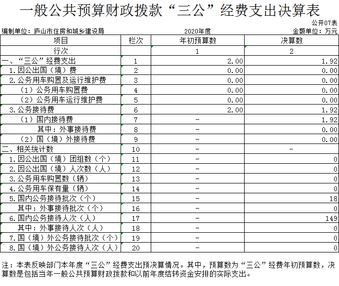 1、“三公”经费支出:指用-般公共预算财政拨款安排的因公出国(境)费、公务用车购置及运行维护费和公务接待费。其 中,因公出国(境) 费反映单位公务出国(境) 的国际旅费、国外城市间交通费、住宿费、伙食费、培训费、公杂费等支出;公务用车购置及运行维护费反映单位公务用车车辆购置支出(含车辆购置税、牌照费),按规定保留的公务用车燃料费、维修费、过桥过路费、保险费、安全奖励费用等支出;公 务接待费反映单位按规定开支的各类公务接待(含外宾接待)支出。