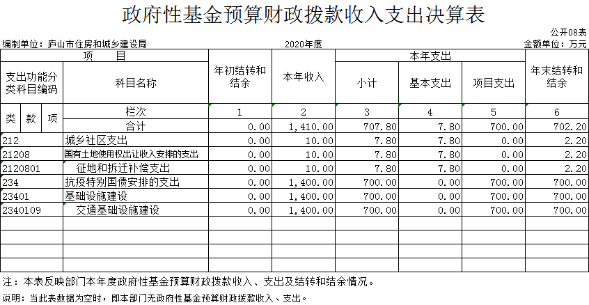 (九)抗疫特别国债安排的支出年初预算数为0万元,决算数为700万元,完成年初预算0%,主要原因:疫特别国债资金未做预算。