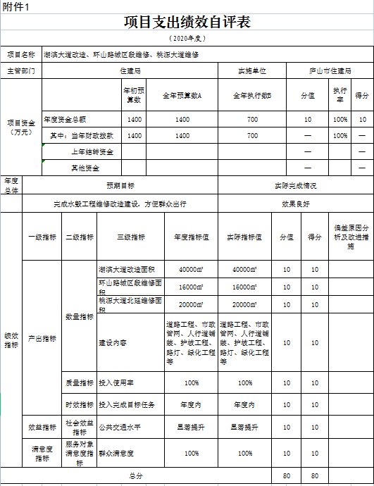 (二)部门决算中项目绩效自评结果。(应当将2020年度市级部门决算项目绩效自评综述和《项目支出绩效自评表》进行公开。)