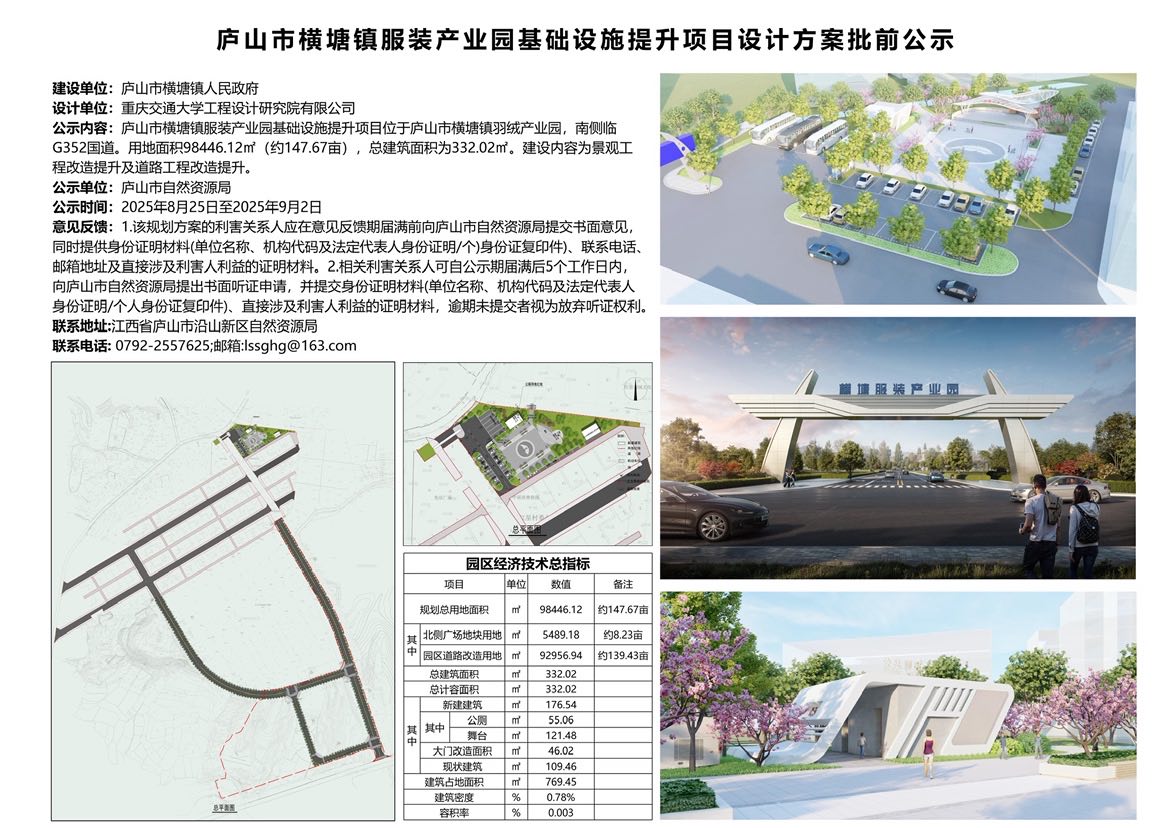 庐山市横塘镇服装产业园基础设施提升项目设计方案批前公示