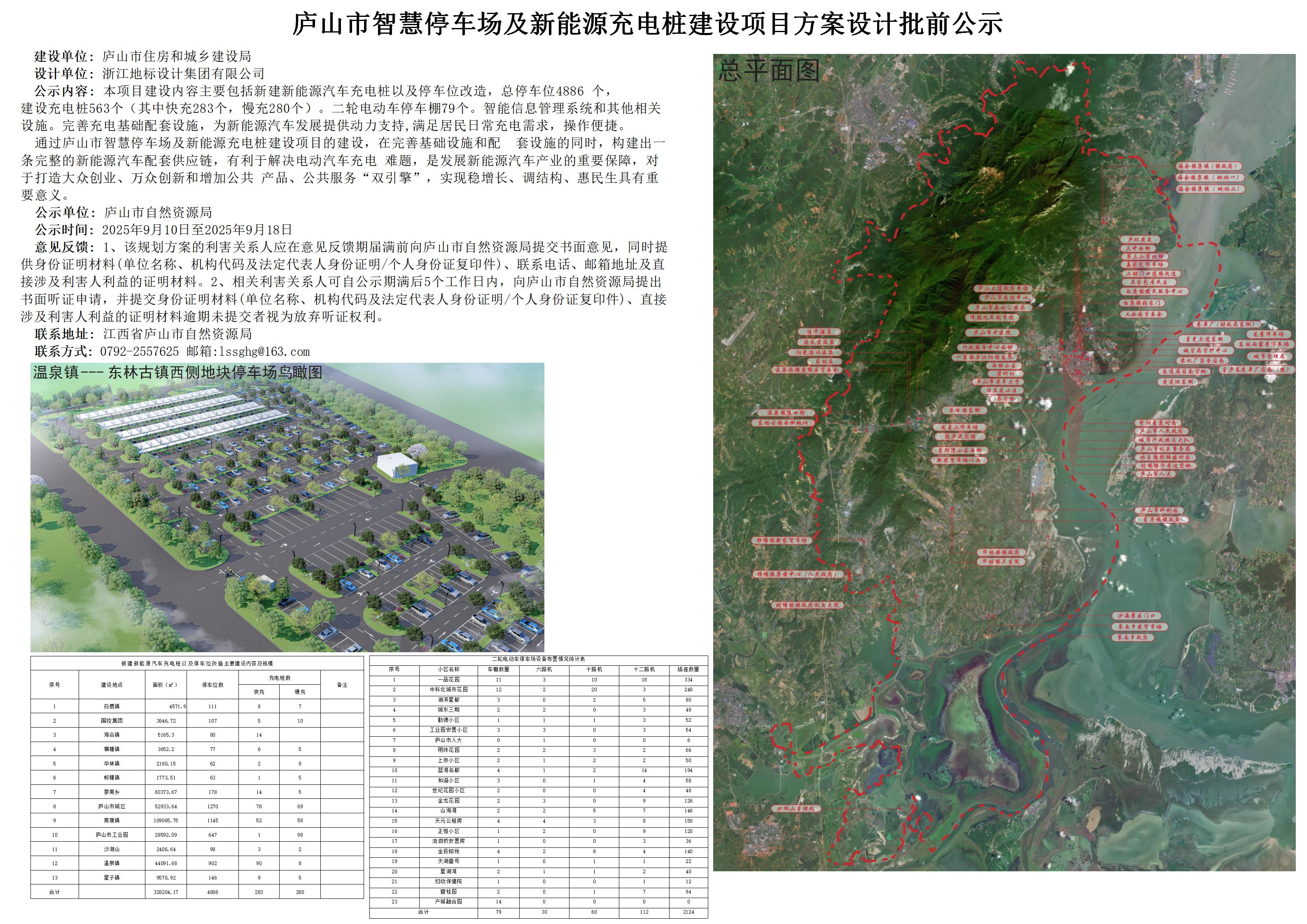 庐山市智慧停车场及新能源充电桩建设项目方案设计批前公示
