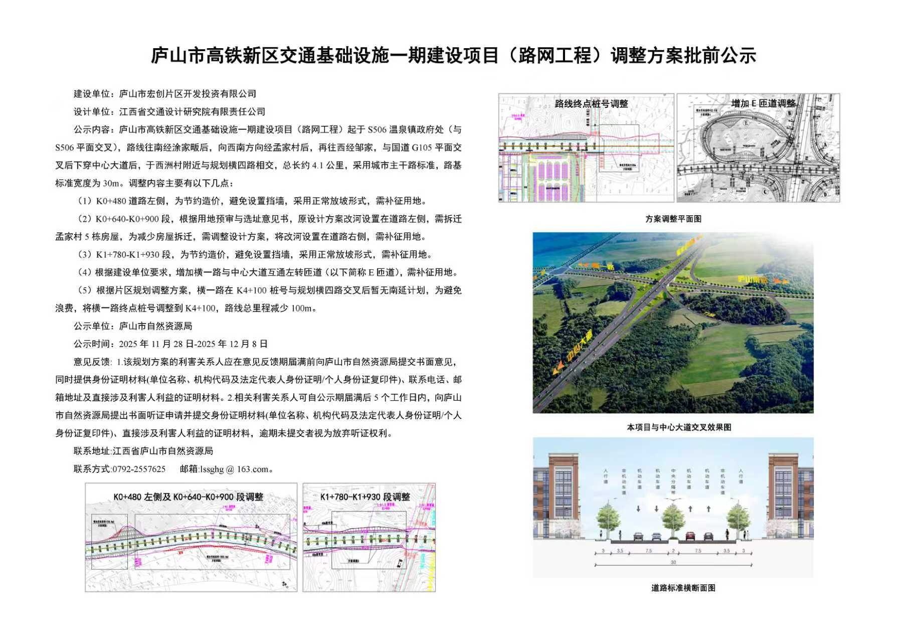 庐山市高铁新区交通基础设施一期建设项目(路网工程)调整方案批前公示