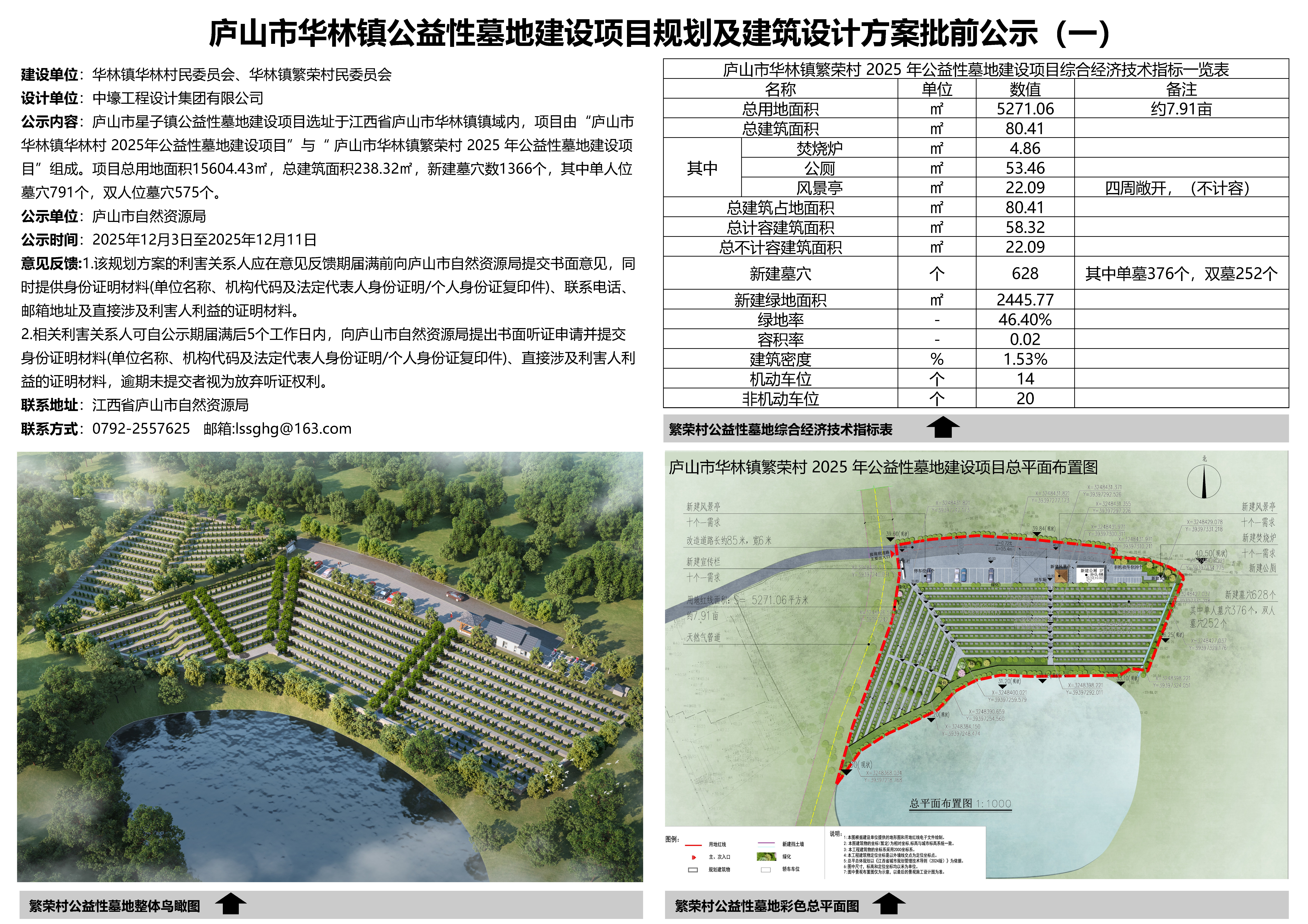 庐山市华林镇公益性墓地建设项目规划及建筑设计方案批前公示