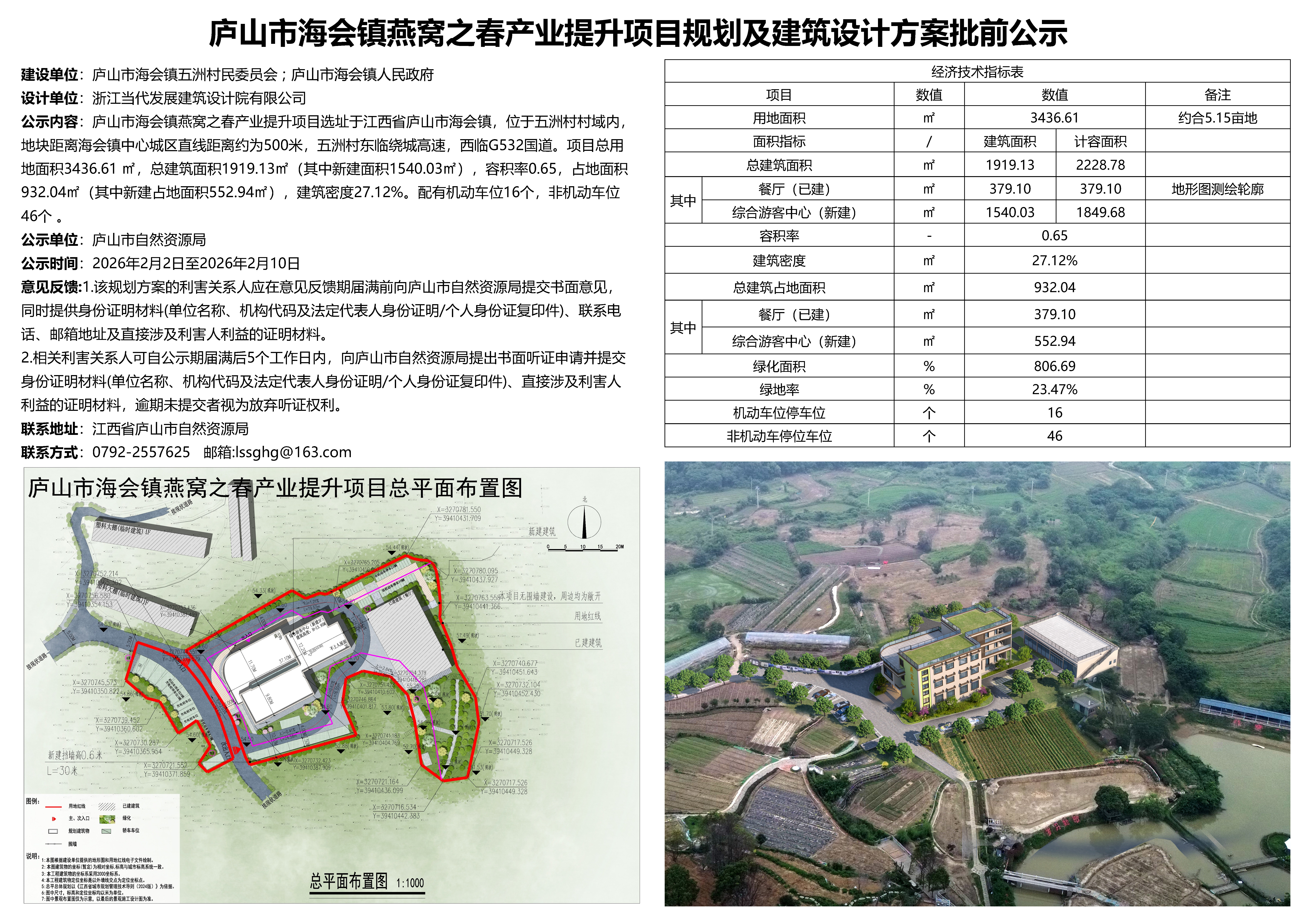 庐山市海会镇燕窝之春产业提升项目规划及建筑设计方案批前公示