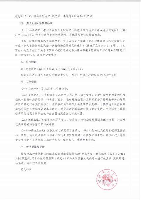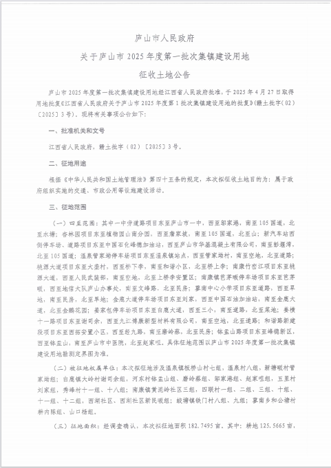 关于庐山市2025年度第一批次集镇建设用地征收土地公告